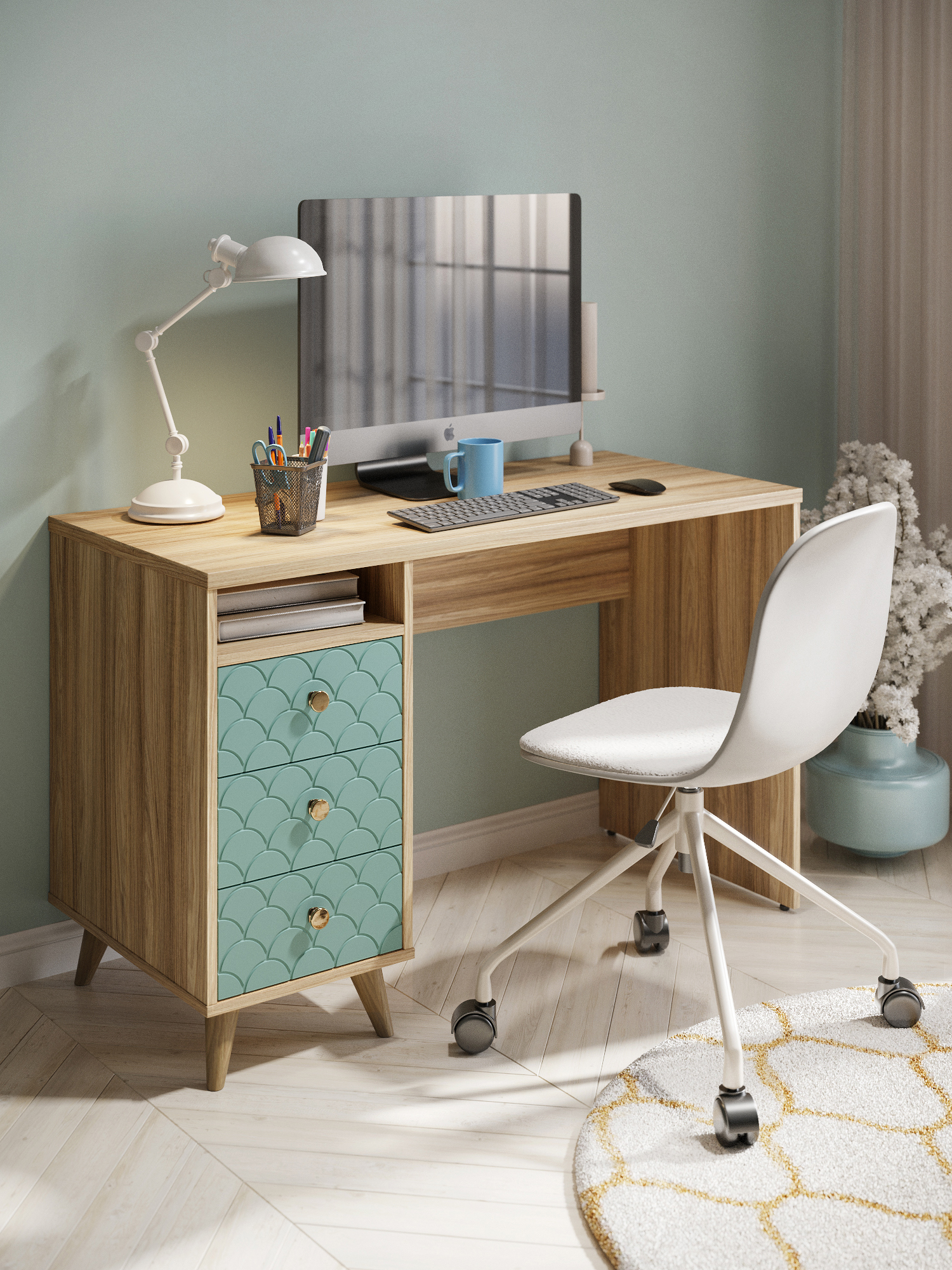 Создание удобной туалетной зоны (гримерки) или компактного рабочего места в спальне, гостиной или гардеробной вместе со столом ВО-17. Сборка тумбы с ящиками только с правой стороны.