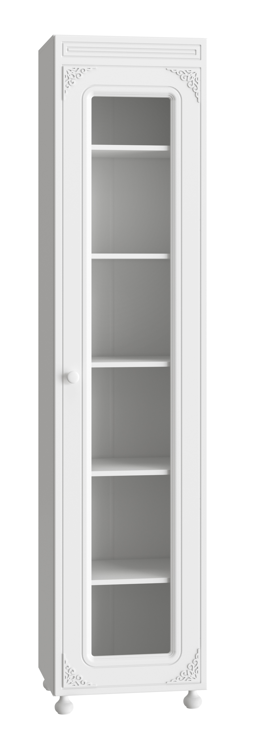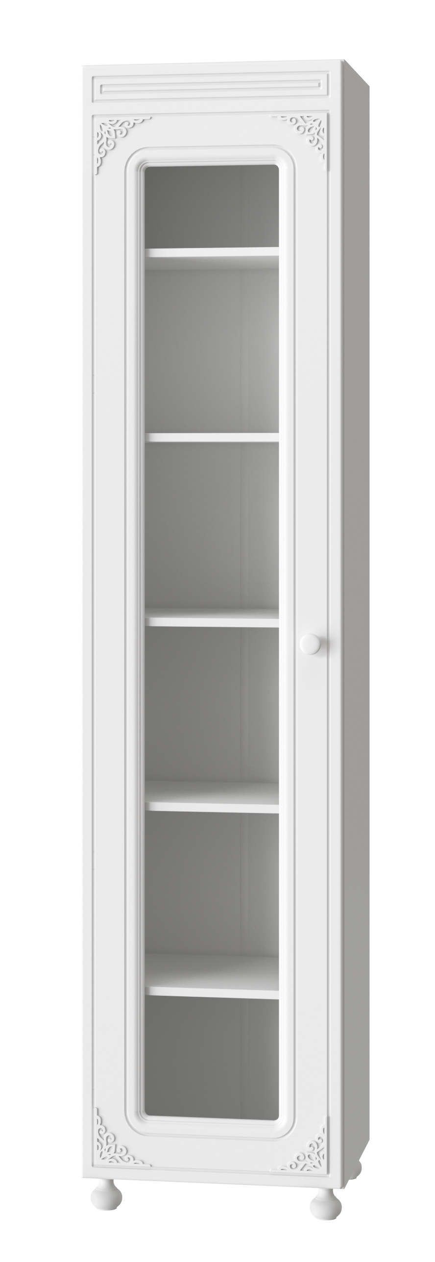 Шкаф-пенал Ассоль АС-533К станет замечательным дополнением для обустройства комфортной и функциональной комнаты. В оформлении фасадов МДФ применяется уникальная технология нанесения объемного узора 3D. Шкаф укомплектован пятью полками для оптимальной системы хранения. Идеально впишется как в спальню, гостиную, прихожую, так и в детскую комнату. Стекло прозрачное. Фурнитура: петли с доводчиками. Высота опоры 65 мм.