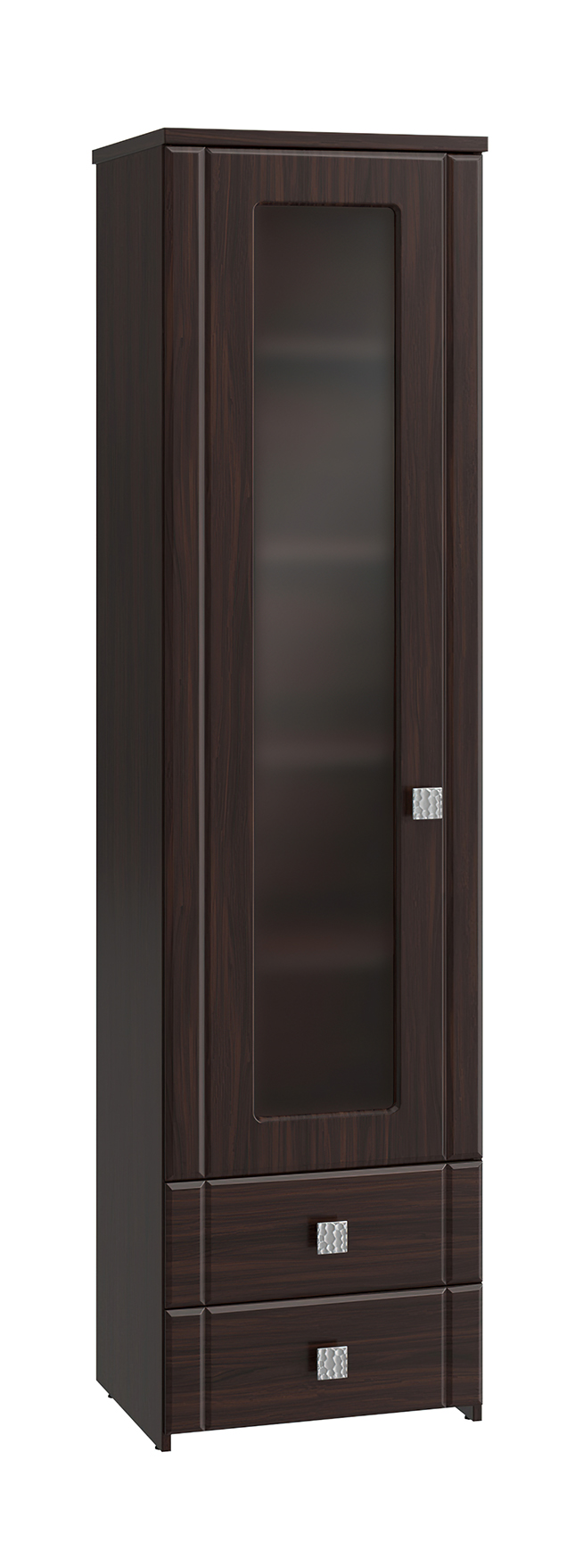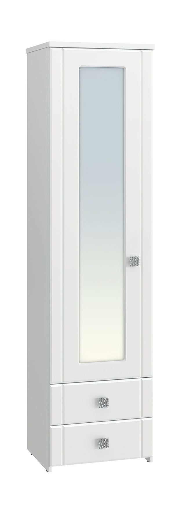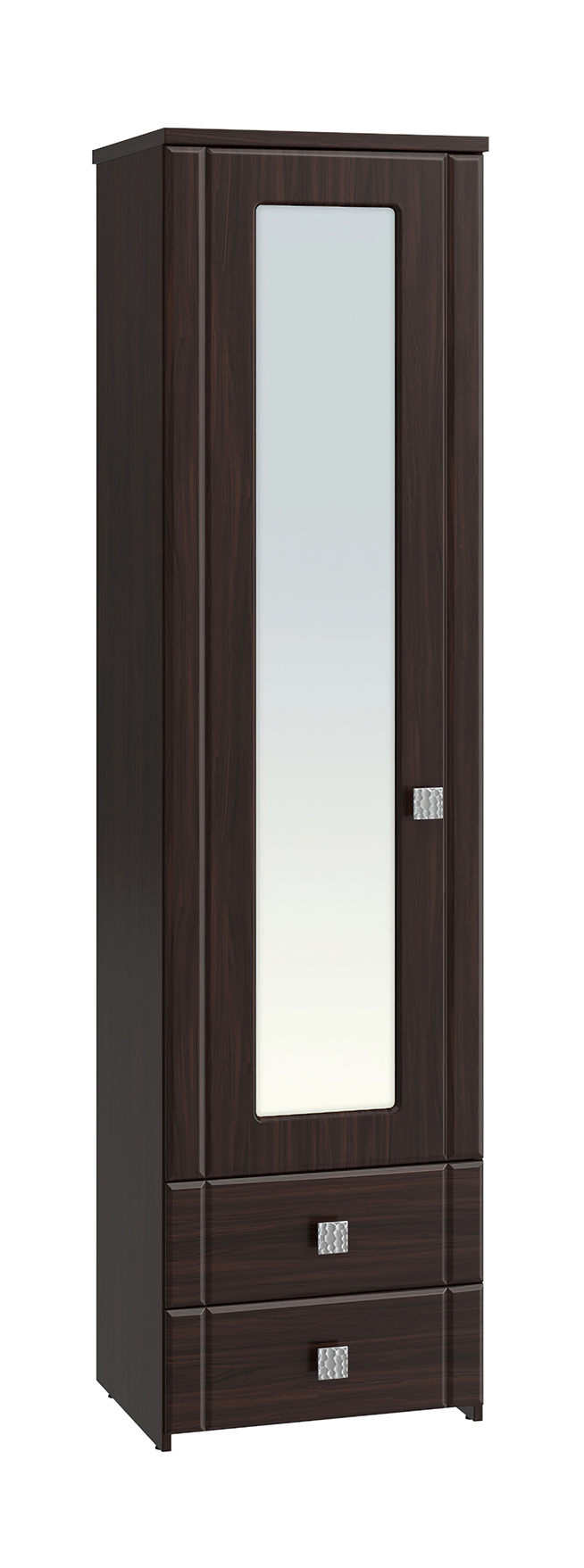 Шкаф-пенал с зеркалом Изабель ИЗ-63К предназначен для белья или книг, оснащен для вашего удобства четырьмя полками и двумя выдвижными ящиками. Модуль может быть собран "левым" или "правым". Крышка выполнена из ЛДСП 25 мм, дно ящиков двп 3 мм. Фурнитура: металлизированные квадратные ручки, петли с доводчиками, телескопические направляющие полного выдвижения без доводчиков.
