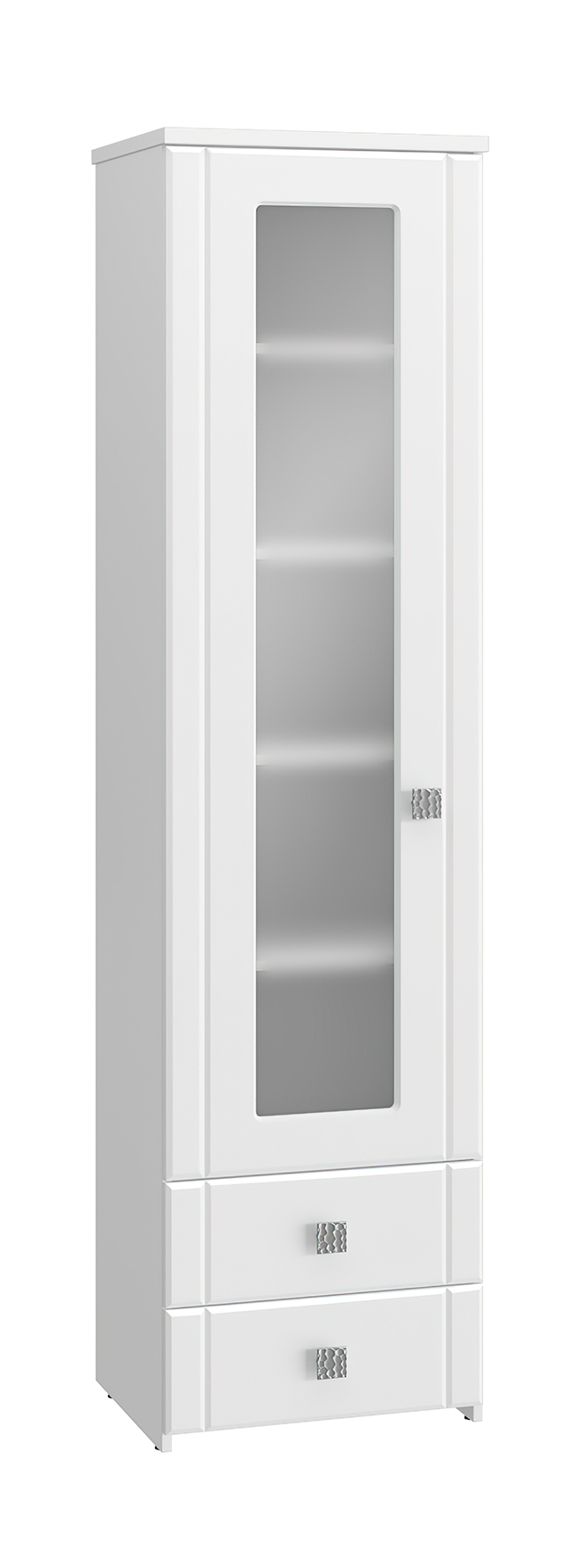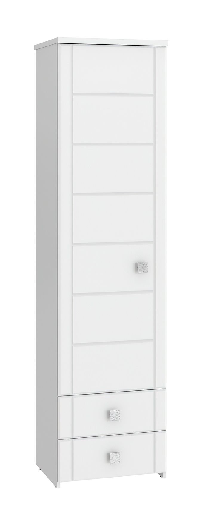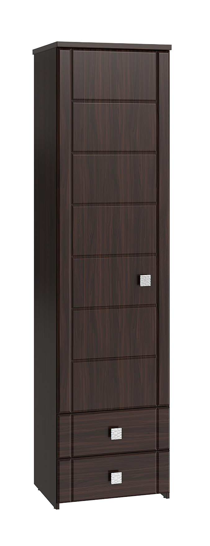 Шкаф-пенал с зеркалом Изабель ИЗ-63К предназначен для белья или книг, оснащен для вашего удобства четырьмя полками и двумя выдвижными ящиками. Модуль может быть собран "левым" или "правым". Крышка выполнена из ЛДСП 25 мм, дно ящиков двп 3 мм. Фурнитура: металлизированные квадратные ручки, петли с доводчиками, телескопические направляющие полного выдвижения без доводчиков.