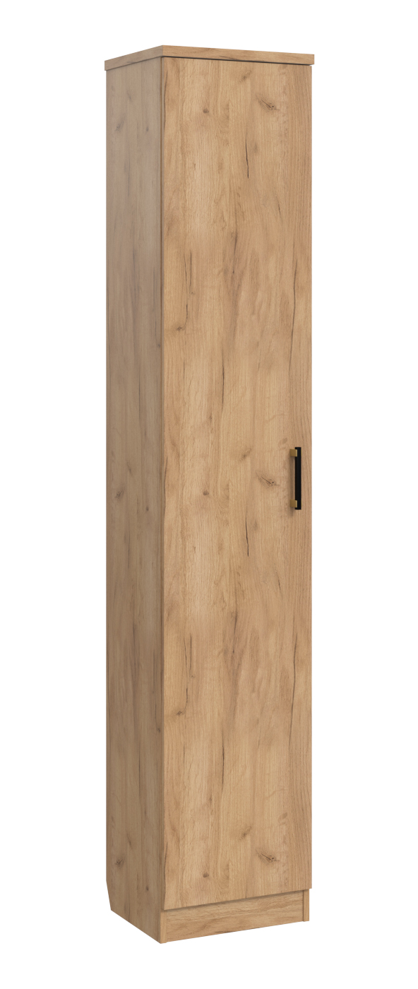 Стильный, функциональный шкаф-пенал Виктория ВИ-7 идеальное решение для хранения книг, одежды, постельного белья или разных аксессуаров. Пенал оснащен пятью полками. Когда все вещи лежат на своих местах – это залог красивого и аккуратного интерьера. Крышка выполнена из ЛДСП 25 мм, корпус 16 мм. Внизу имеется вырез под плинтус для установки вплотную к стене. Задняя стенка двп 3 мм. Модуль может быть собран в зеркальном варианте «правым» или «левым». Фурнитура: петли с доводчиками, ручка пластик, опоры регулируемые.