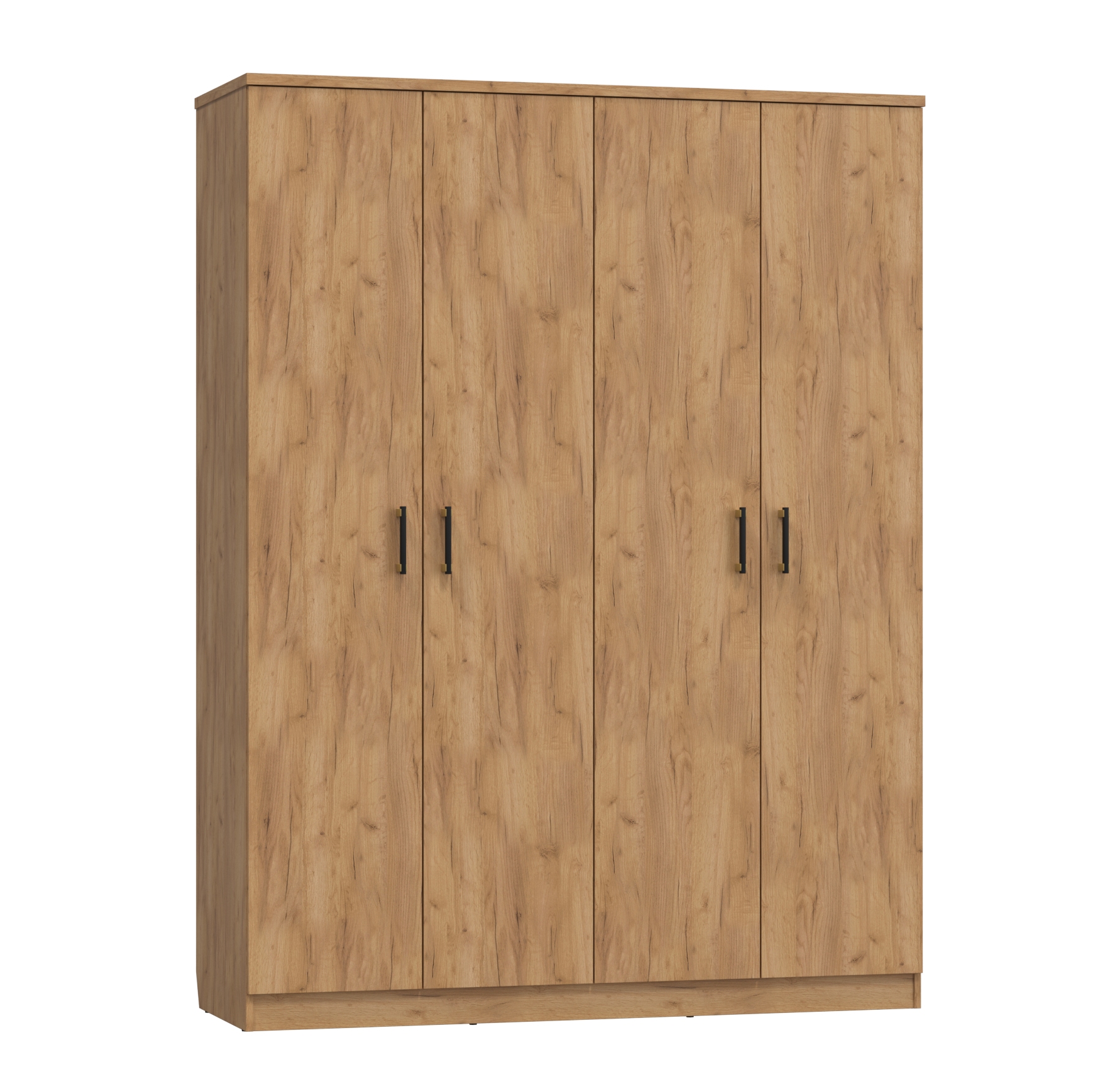Шкаф четырехдверный для одежды Виктория ВИ-10 разделен на три секции, оснащен шестью полками и двумя тштангами для удобного расположения вещей. Когда все вещи лежат на своих местах – это залог красивого и аккуратного интерьера. Крышка выполнена из ЛДСП 25 мм, корпус 16 мм. Внизу имеется вырез под плинтус для установки вплотную к стене. Задняя стенка двп 3 мм. Фурнитура: петли с доводчиками, ручки пластик, опоры регулируемые.