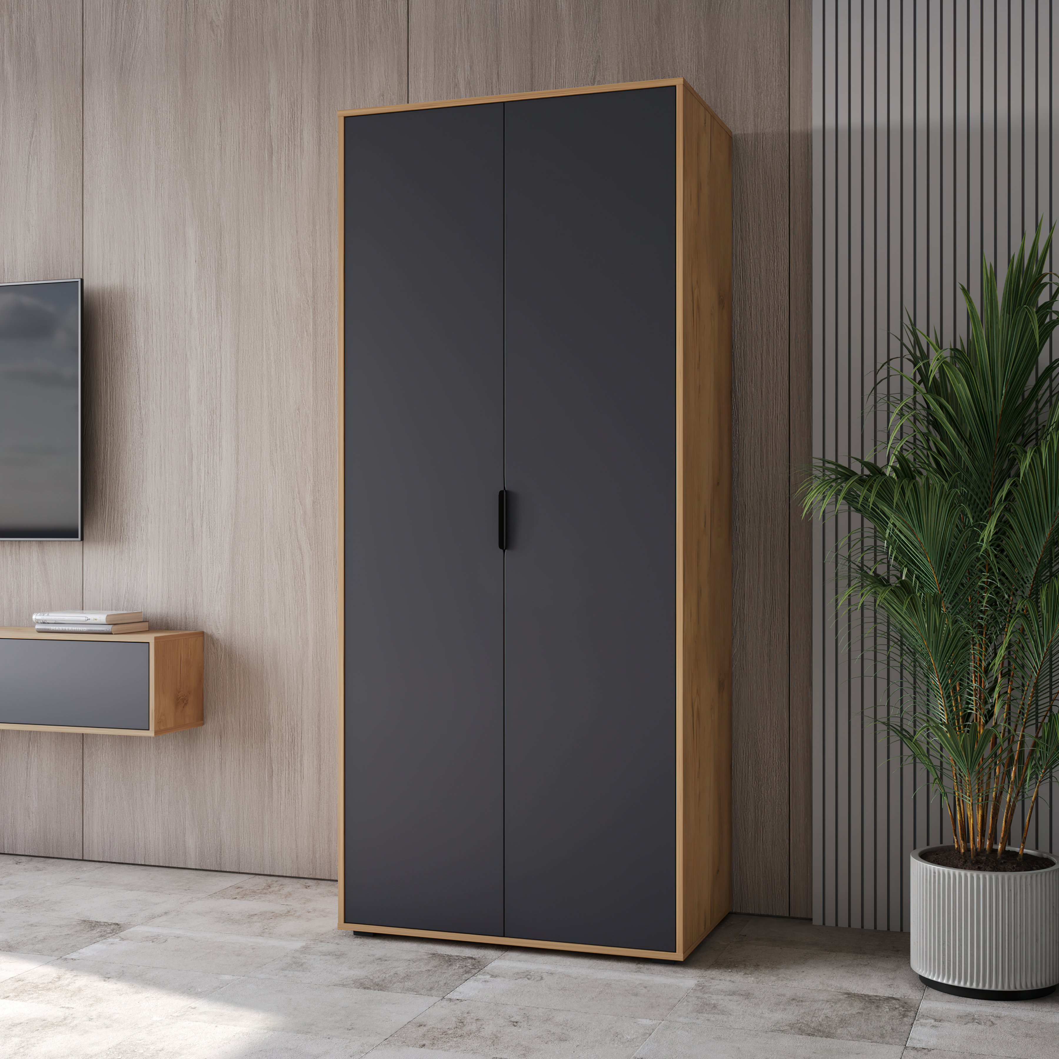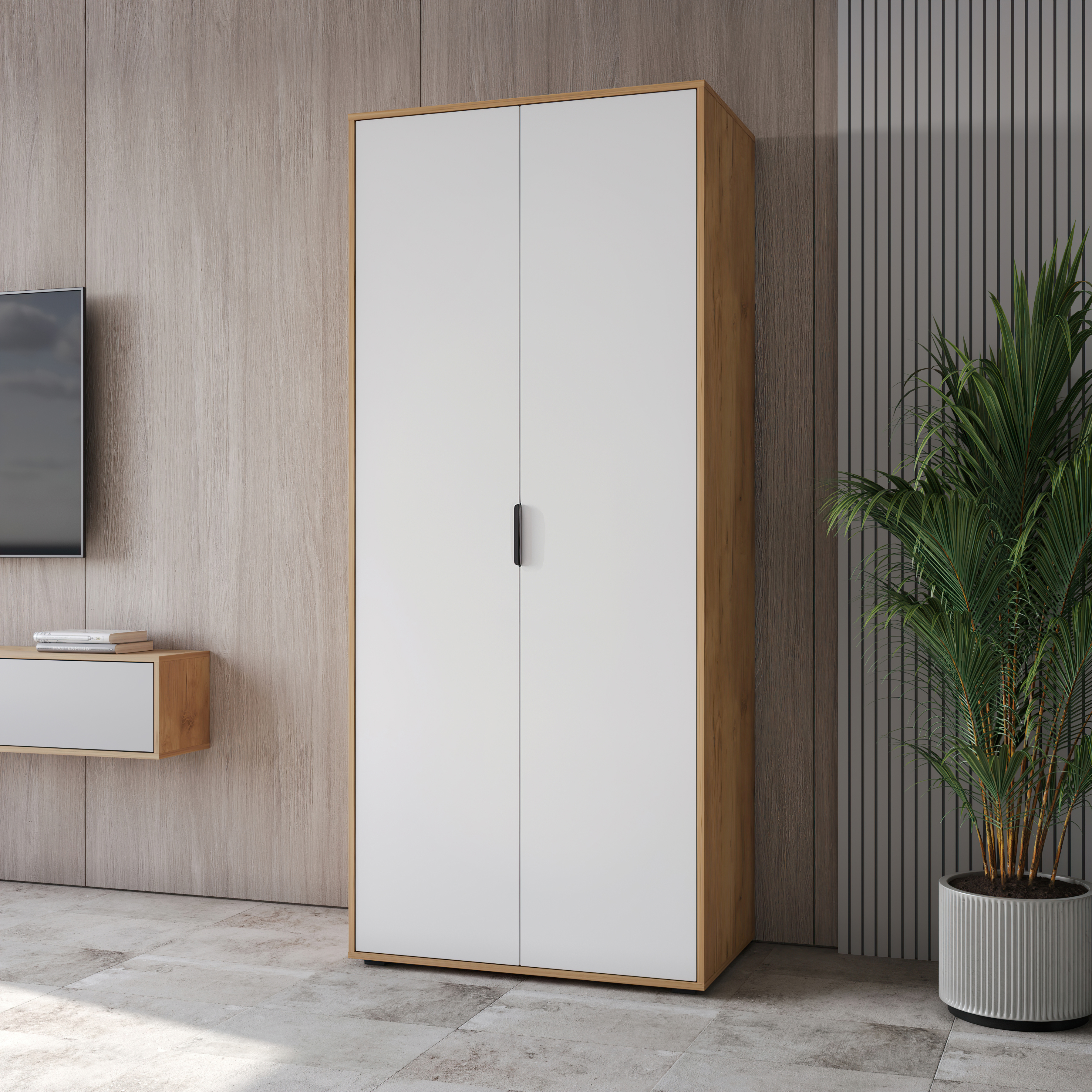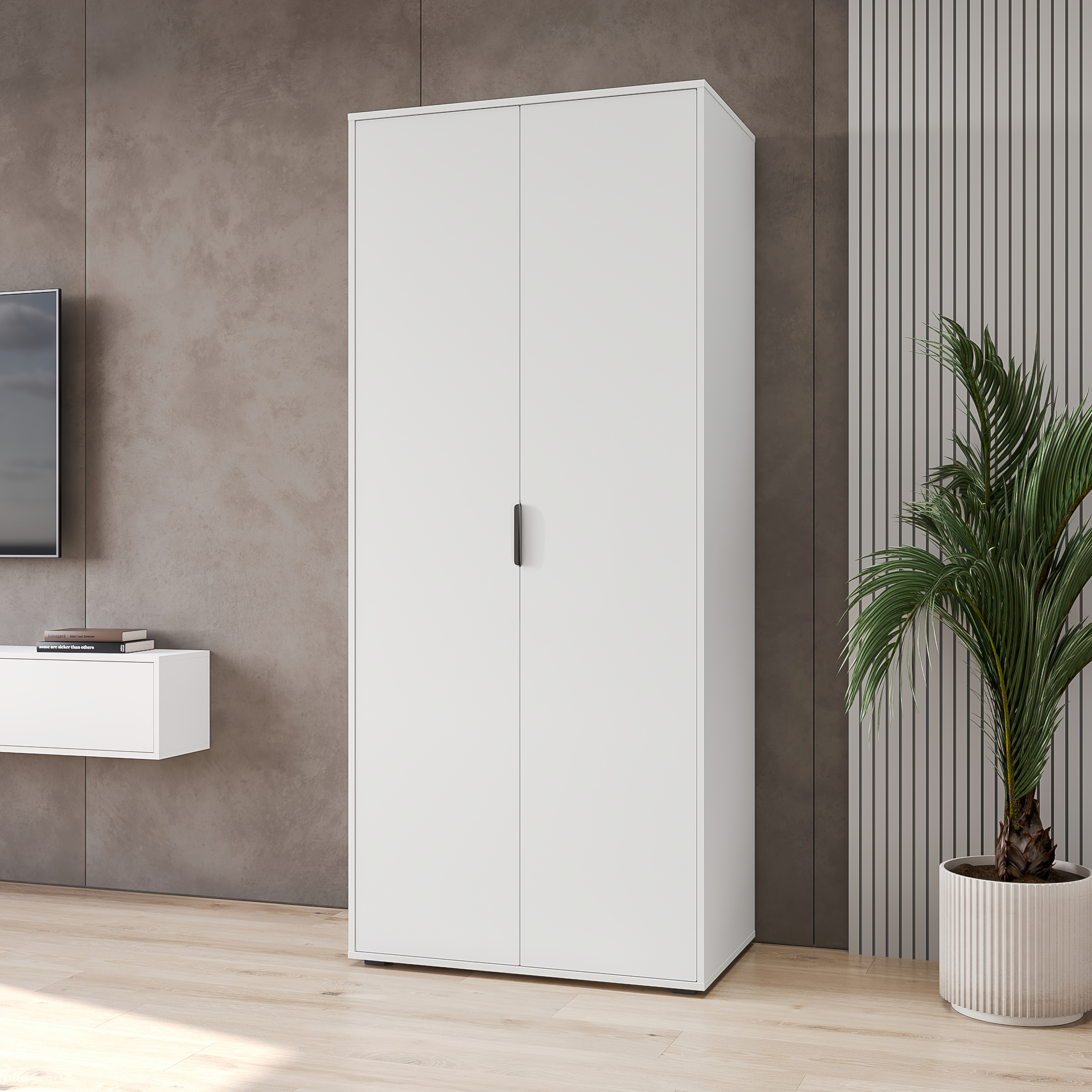 Шкаф для одежды Оптима ОП-01 станет замечательным дополнением для обустройства комфортной и функциональной комнаты. За распашными дверьми находится две штанги для вешалок-плечиков. Полки для хранения сложенной одежды, белья, различных аксессуаров и коробок с обувью. Три варианта сборки шкафа с разным расположением съемной полки и штанг. Высота опоры 20 мм. Фурнитура: петли с доводчиками, ручки металл, опоры регулируемые.