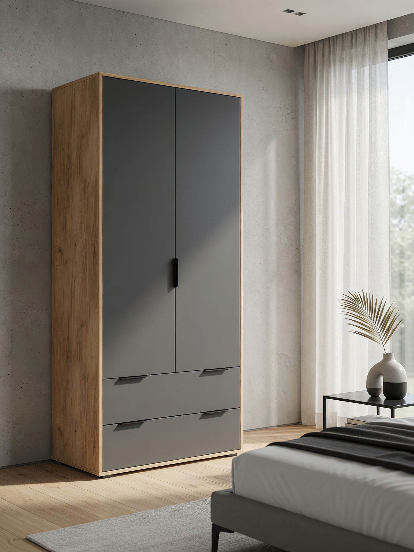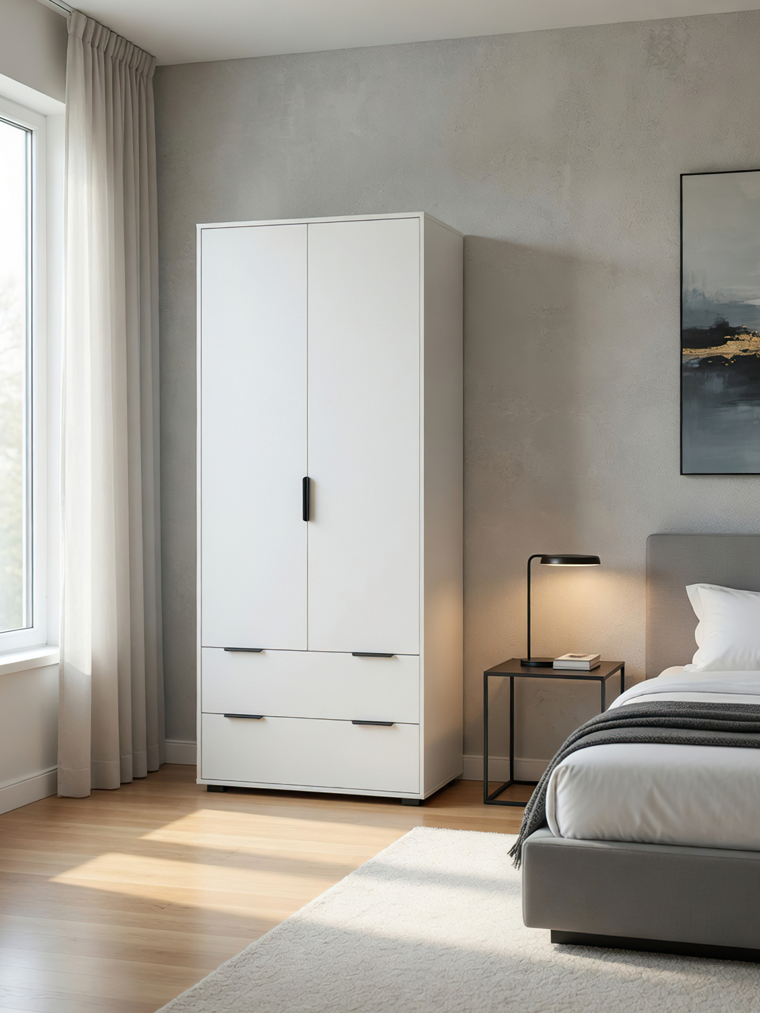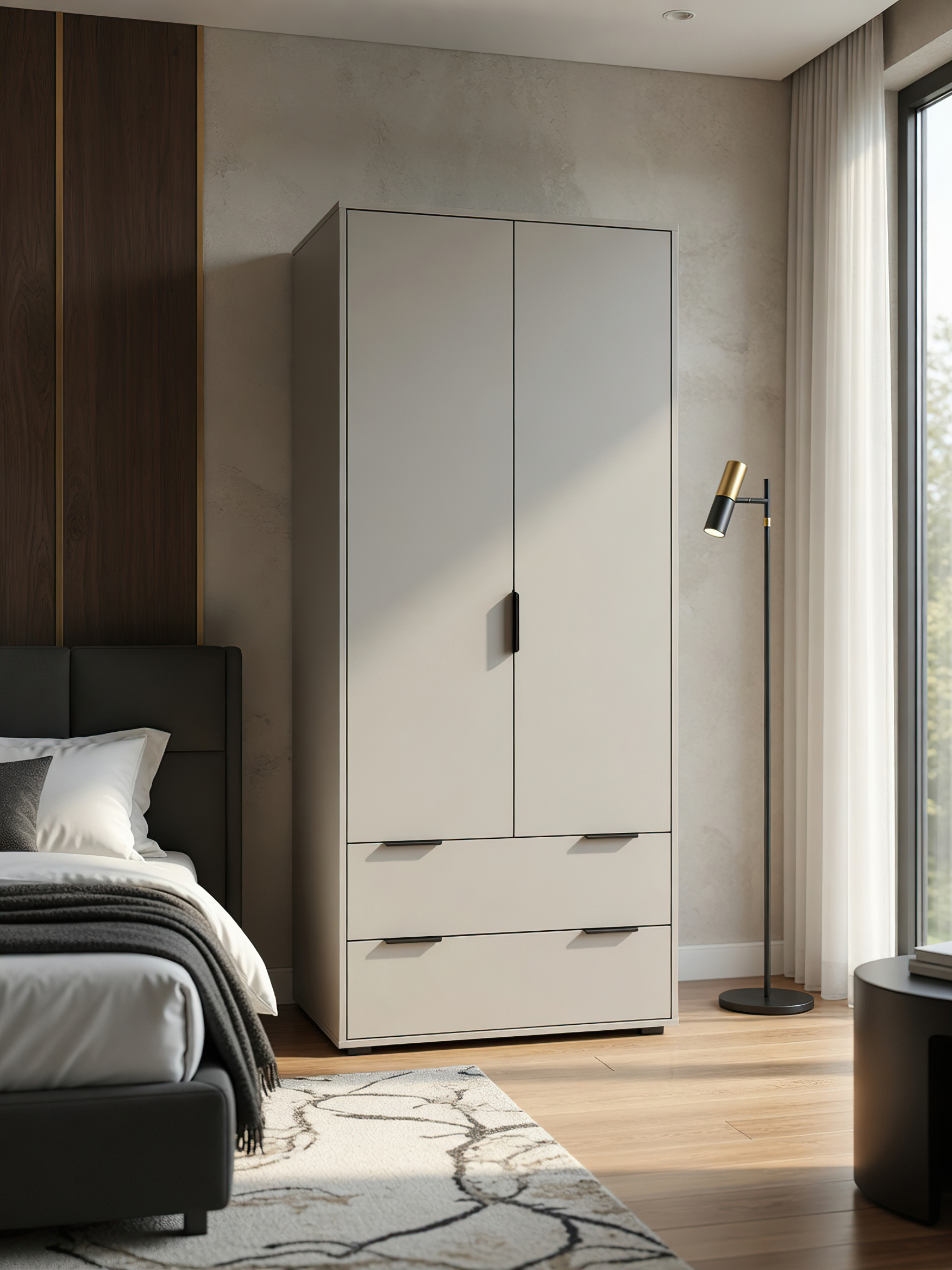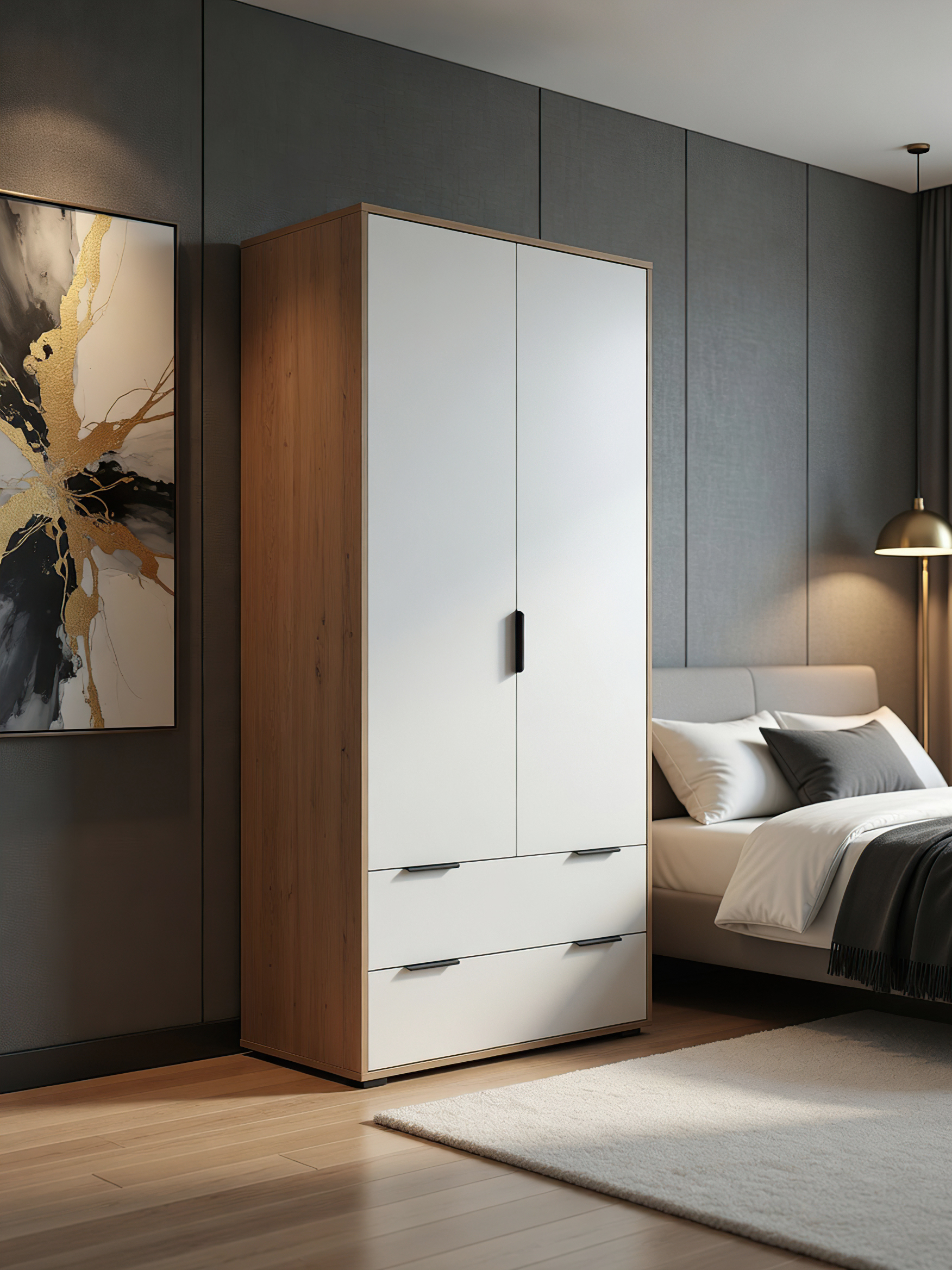 Шкаф платяной для одежды Оптима ОП-26 станет замечательным дополнением для обустройства комфортной и функциональной комнаты. За распашными дверьми находится штанга для вешалок-плечиков. Полки для хранения сложенной одежды, белья, различных аксессуаров и коробок с обувью. Высота опоры 20 мм. Фурнитура: петли с доводчиками, ручки металл, опоры регулируемые, телескопические направляющие полного выдвижения без доводчиков.