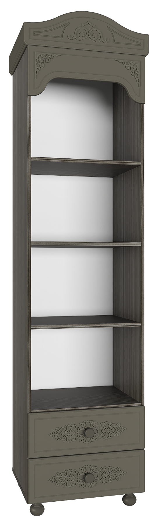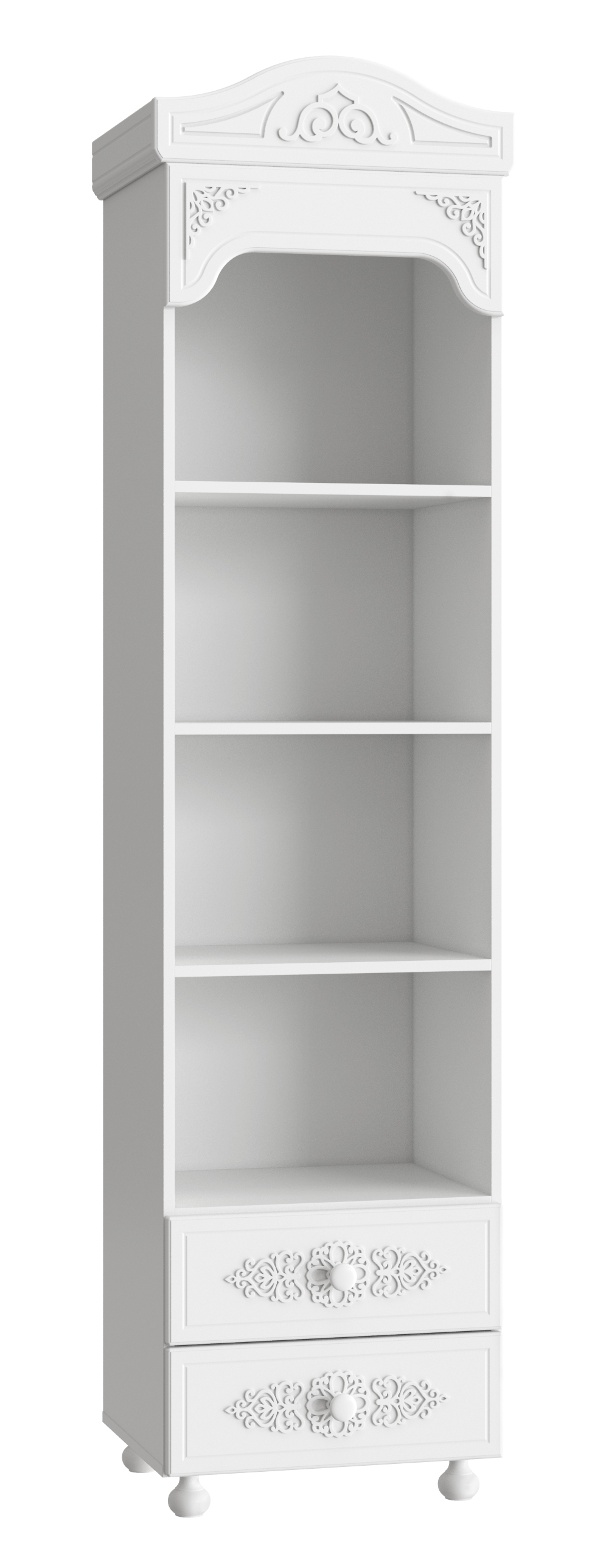 Стеллаж белый напольный Ассоль АС-43 подойдет для гостиной, спальни, детской. Стеллаж не только удовлетворит ваши потребности по хранению, но и станет настоящим акцентом вашего интерьера. Особый шарм придают уникальные объемные фасады с 3D накладками. Стеллаж АС-43 не только хорошо впишется в интерьер, но и порадует своей надежностью и функциональностью. Дно ящика двп 4 мм. Высота опоры 65 мм. Фурнитура: телескопические направляющие полного выдвижения без доводчиков, ручки пластик, опоры деревянные.
