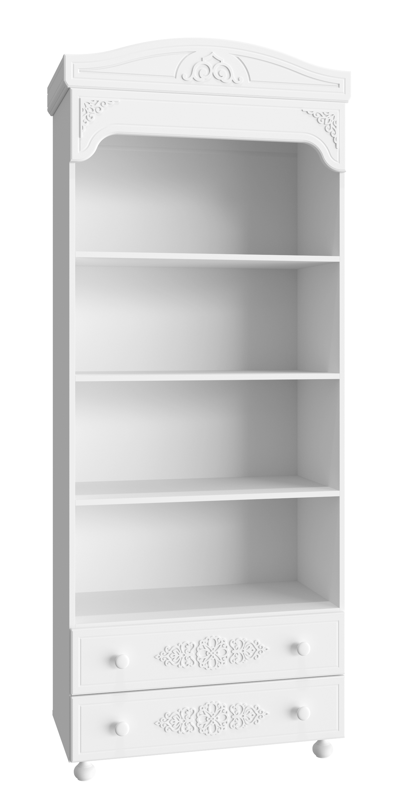 Шкаф-пенал/стеллаж Ассоль АС-3 с тремя полками и двумя выдвижными ящиками. Особый шарм придают уникальные объемные фасады на ящиках с 3D накладками. Стеллаж АС-3 не только хорошо впишется в интерьер, но и порадует своей надежностью и функциональностью. Фурнитура: петли с доводчиками, телескопические направляющие полного выдвижения. Высота опоры 65 мм.