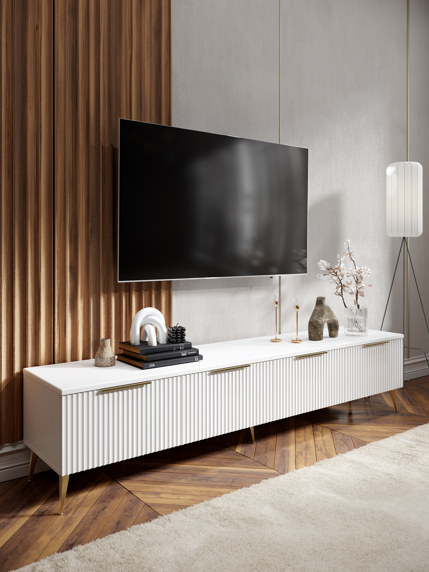 Тумба под ТВ Афина АФ-04 – это стильная и функциональная модель с рельефными фасадами, которая отлично впишется в современный интерьер.