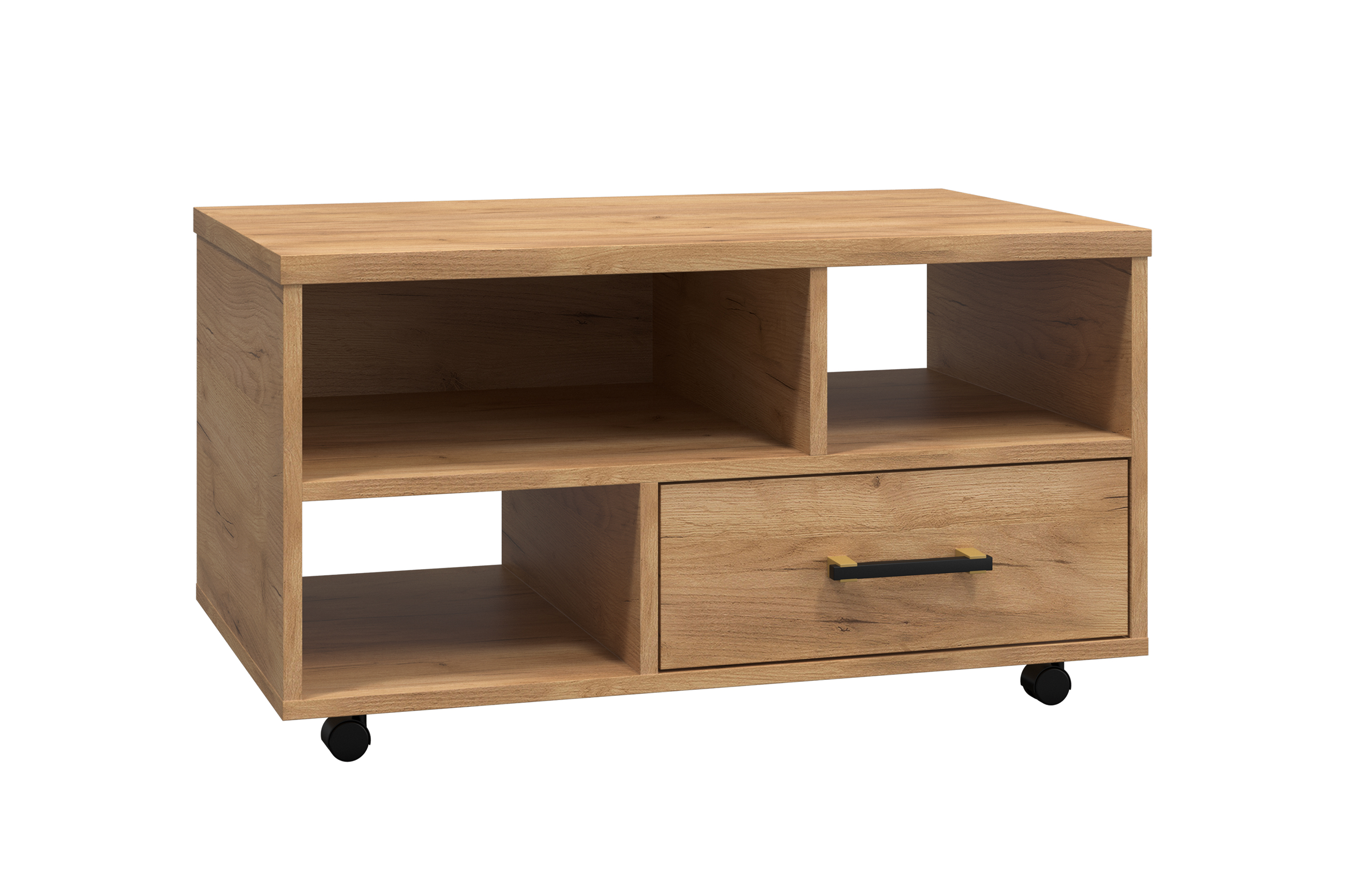 Линейка мебели "Виктория" - выгодное решение для отелей и гостиниц, сбалансированное по цене, качеству и функциональности. В производстве используется ЛДСП, толщины 25/16 мм. Фасады обработаны ударопрочной кромкой ПВХ толщиной 2/0,6 мм. В коллекции используется современная, качественная фурнитура. Базовая комплектация представлена в декоре Дуб крафт золотой и Северное дерево светлое. Журнальный стол Виктория ВИ-60 оснащен одним выдвижным ящиком и тремя нишами для размещения книг, журналов или других аксессуаров. Станет прекрасным украшением интерьера гостиной или другой комнаты.