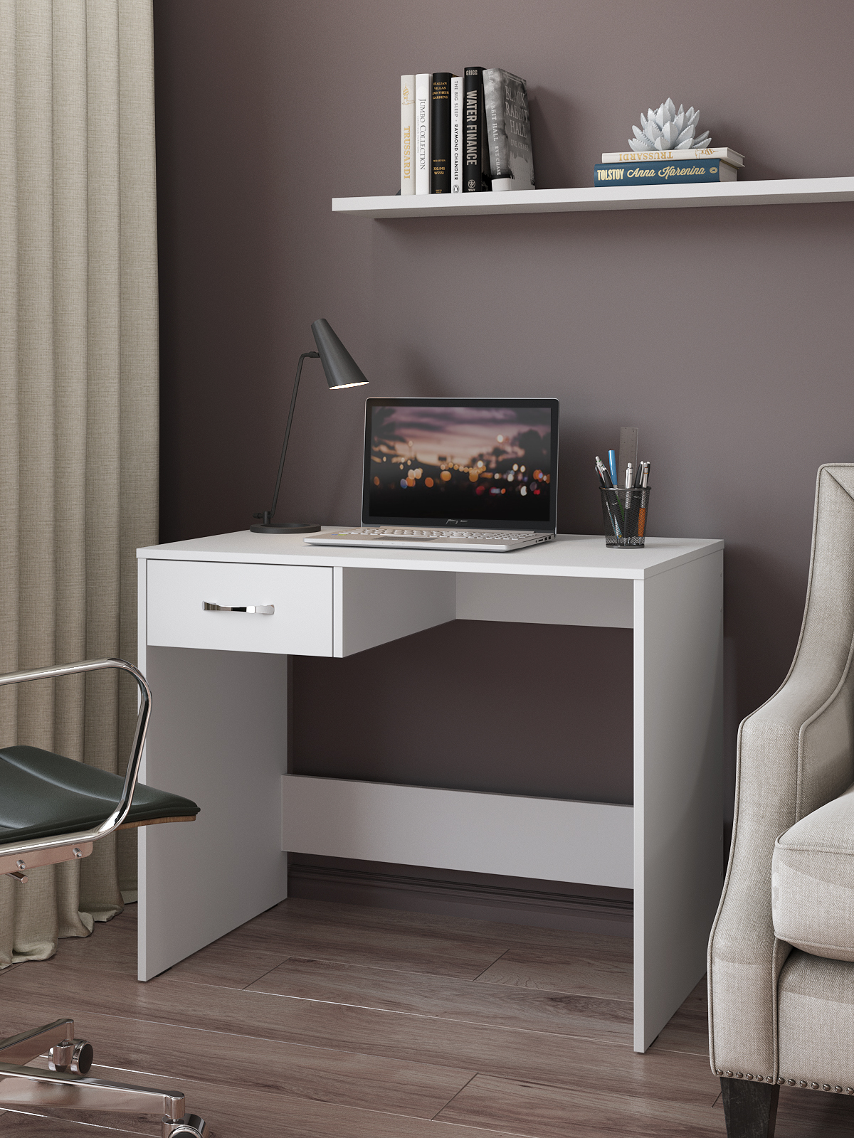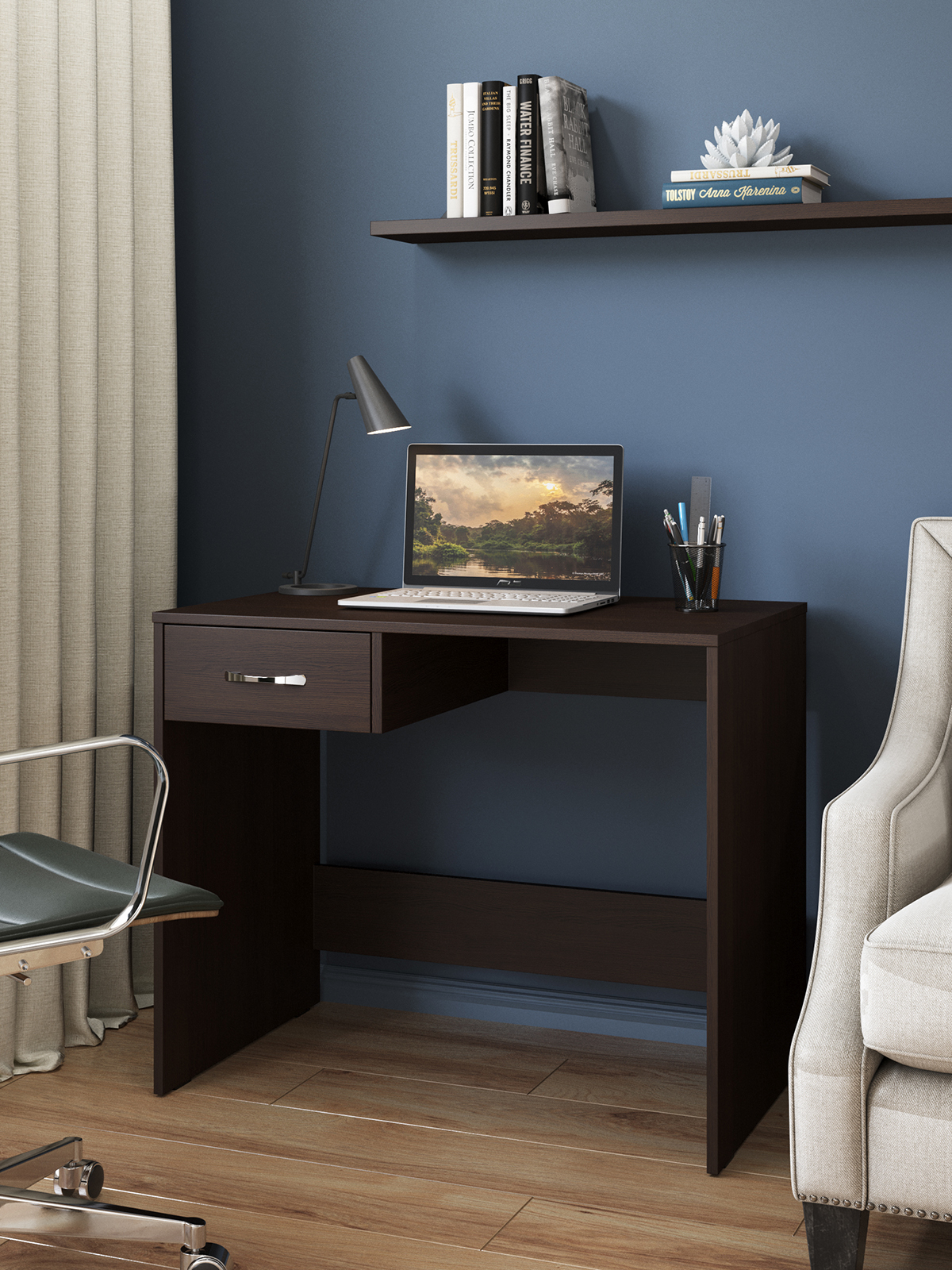 Письменный стол С-234 предусматривает место для монитора, имеется один выдвижной ящик. Внутренние размеры ящика: ш298*в90*г384 мм. Фурнитура: роликовые направляющие.