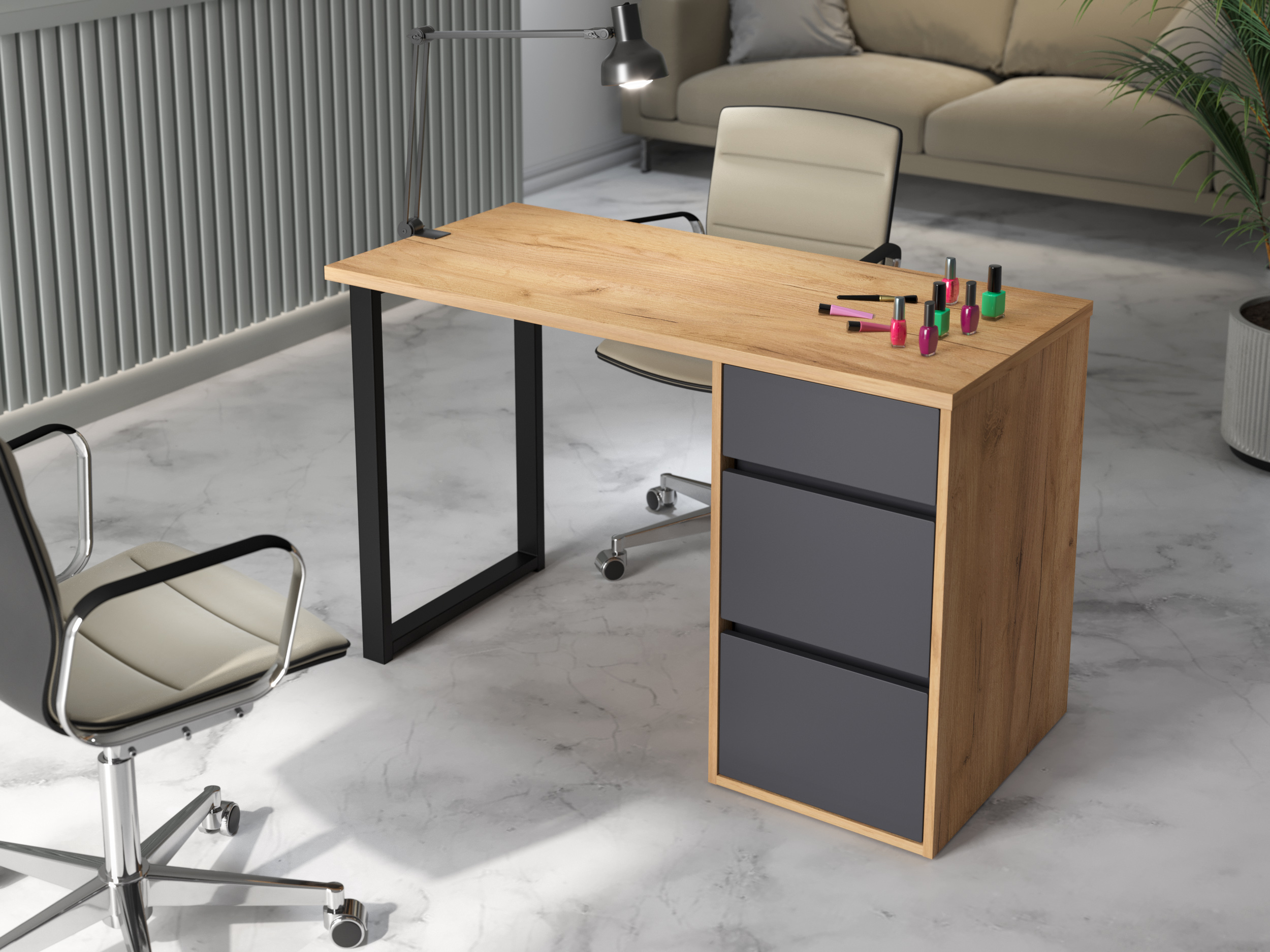Стол в стиле лофт С-401: стиль, функциональность и надежность. Создайте идеальное рабочее пространство с письменным столом в стиле лофт С-401. Этот стол сочетает в себе современный дизайн, высокое качество материалов и продуманную функциональность, что делает его идеальным решением для офиса, домашнего кабинета или даже маникюрного салона.