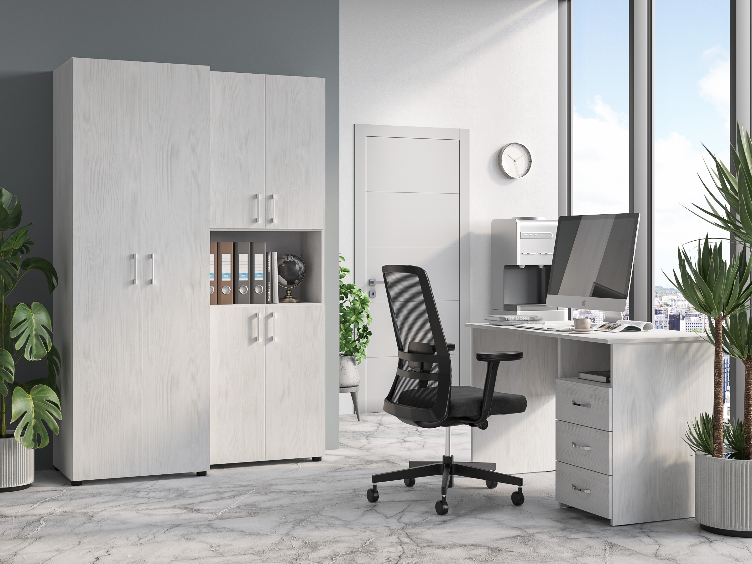 Фурнитура: петли с доводчиками, телескопические направляющие полного выдвижения без доводчиков, опоры регулируемые по высоте, ручки пластик.