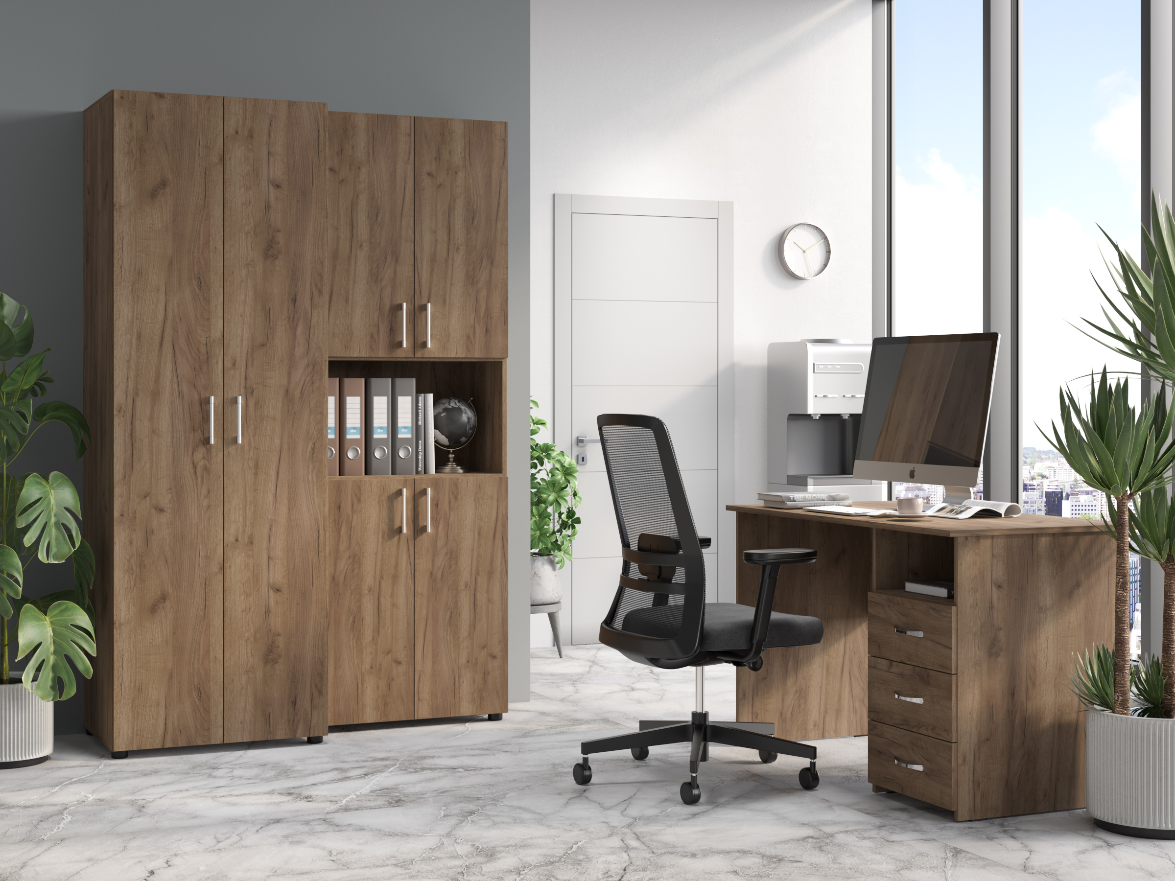Фурнитура: петли с доводчиками, телескопические направляющие полного выдвижения без доводчиков, опоры регулируемые по высоте, ручки пластик.