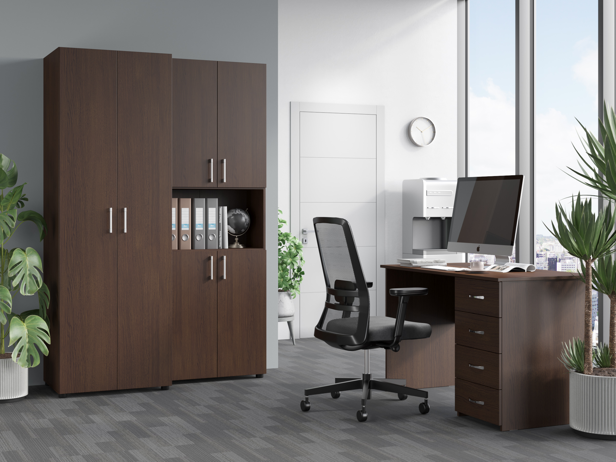 Фурнитура: петли с доводчиками, телескопические направляющие полного выдвижения без доводчиков, опоры регулируемые по высоте, ручки пластик.