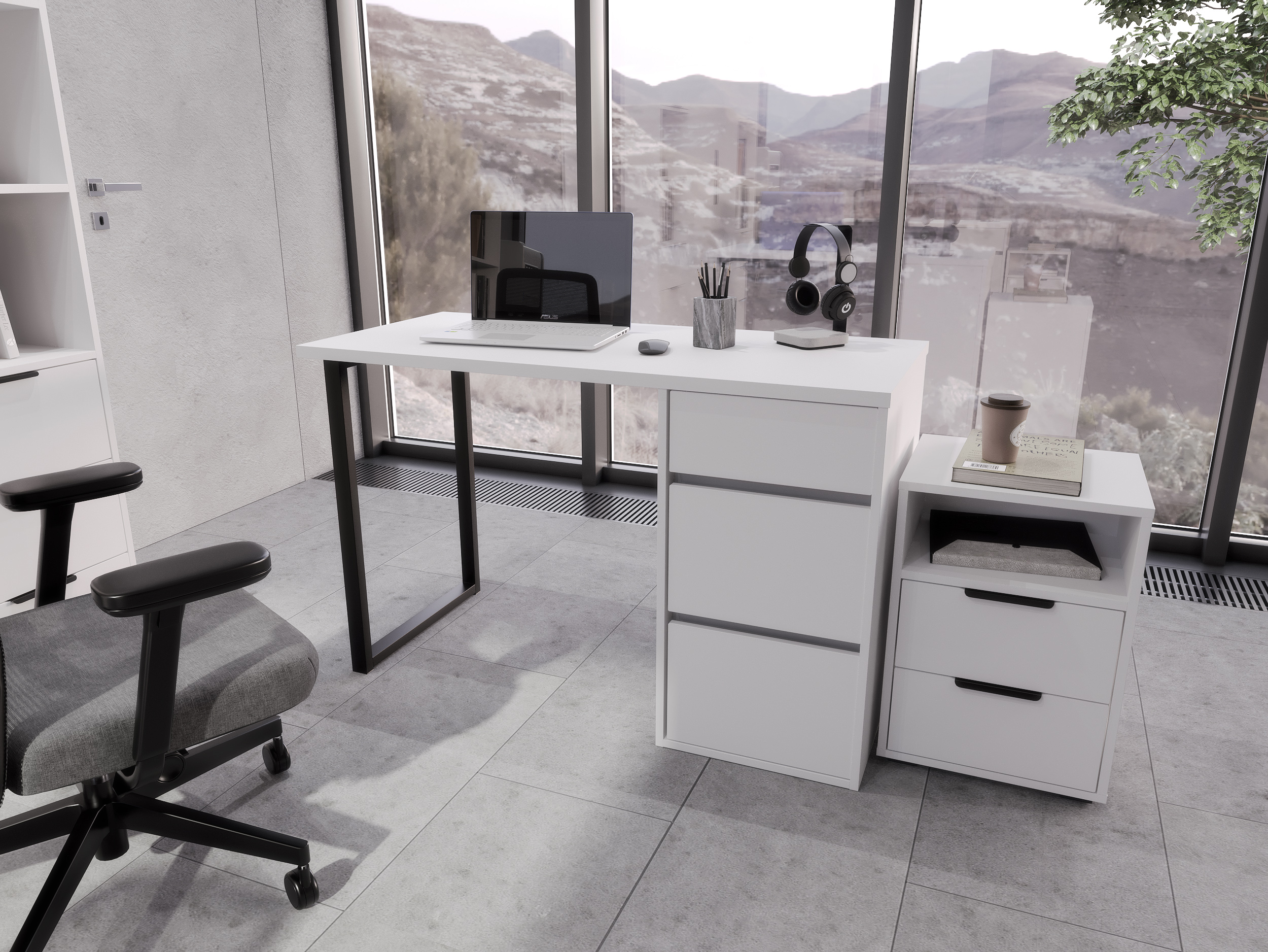 Размеры комплекта (ш/в/г) в мм: 1602х760х550 Цвет корпуса/фасада: белый структурный/меренга Материал корпуса/фасада: ЛДСП 16мм, МДФ 16мм Комплект данного гарнитура состоит из: Стол С-401 белый структурный/меренга / 1 шт Тумба прикроватная Оптима ОП-07 белый структурный/меренга / 1 шт Фурнитура: петли с доводчиками, телескопические направляющие полного выдвижения без доводчиков, ручки металл.  Доставка и сборка: мебель поставляется в разобранном виде, в надежной упаковке, с подробной инструкцией по сборке. Сборка осуществляется самостоятельно или с при