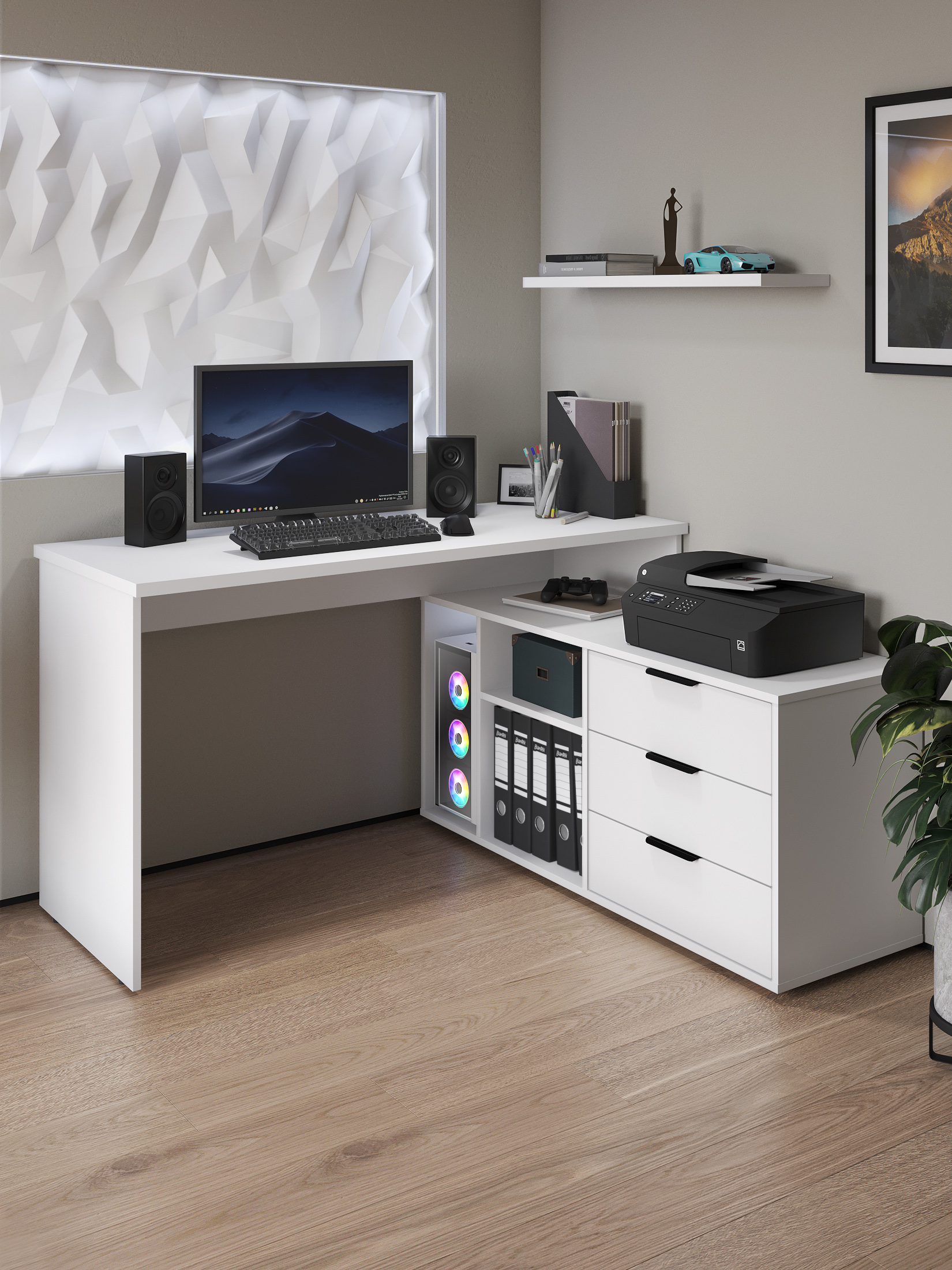 Стол угловой Оптима ОП-22 станет отличной основой для создания комфортного рабочего пространства школьника, студента или офисного работника. Стол может быть собран только с тумбой справа.