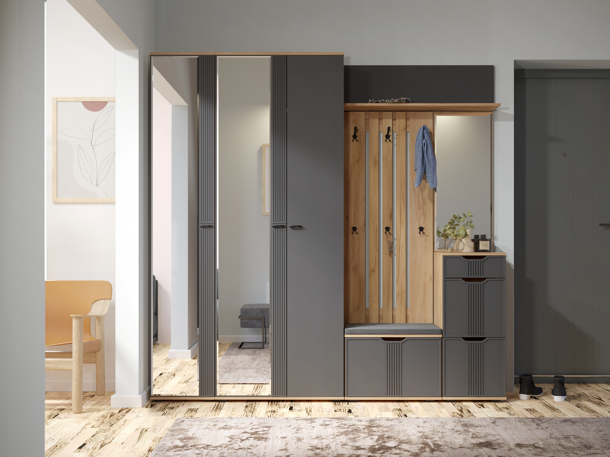 Фурнитура: петли с доводчиками, телескопические направляющие полного выдвижения без доводчиков, крючки и ручки металл. Свес крышки в 30 мм обеспечит прилегание к стене с любым плинтусом. Важная информация. Мебель доставляется в разобранном виде, в упаковках.