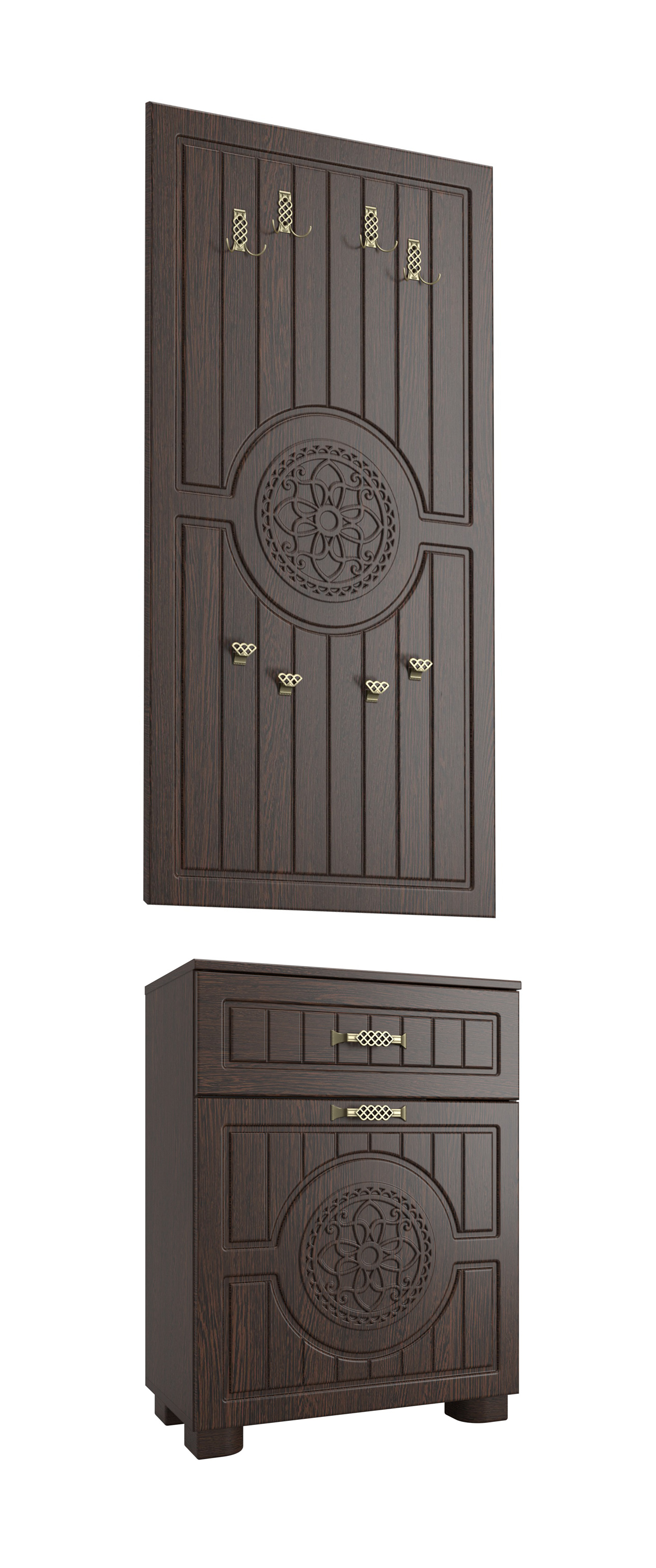 Комплект прекрасно впишется в интерьер современной прихожей. Вешалка может быть установленна на любой высоте. Высота опоры 50 мм. Фурнитура: ручки и крючки металл, телескопические направляющие полного выдвижения без доводчиков, газлифты, опоры пластик.