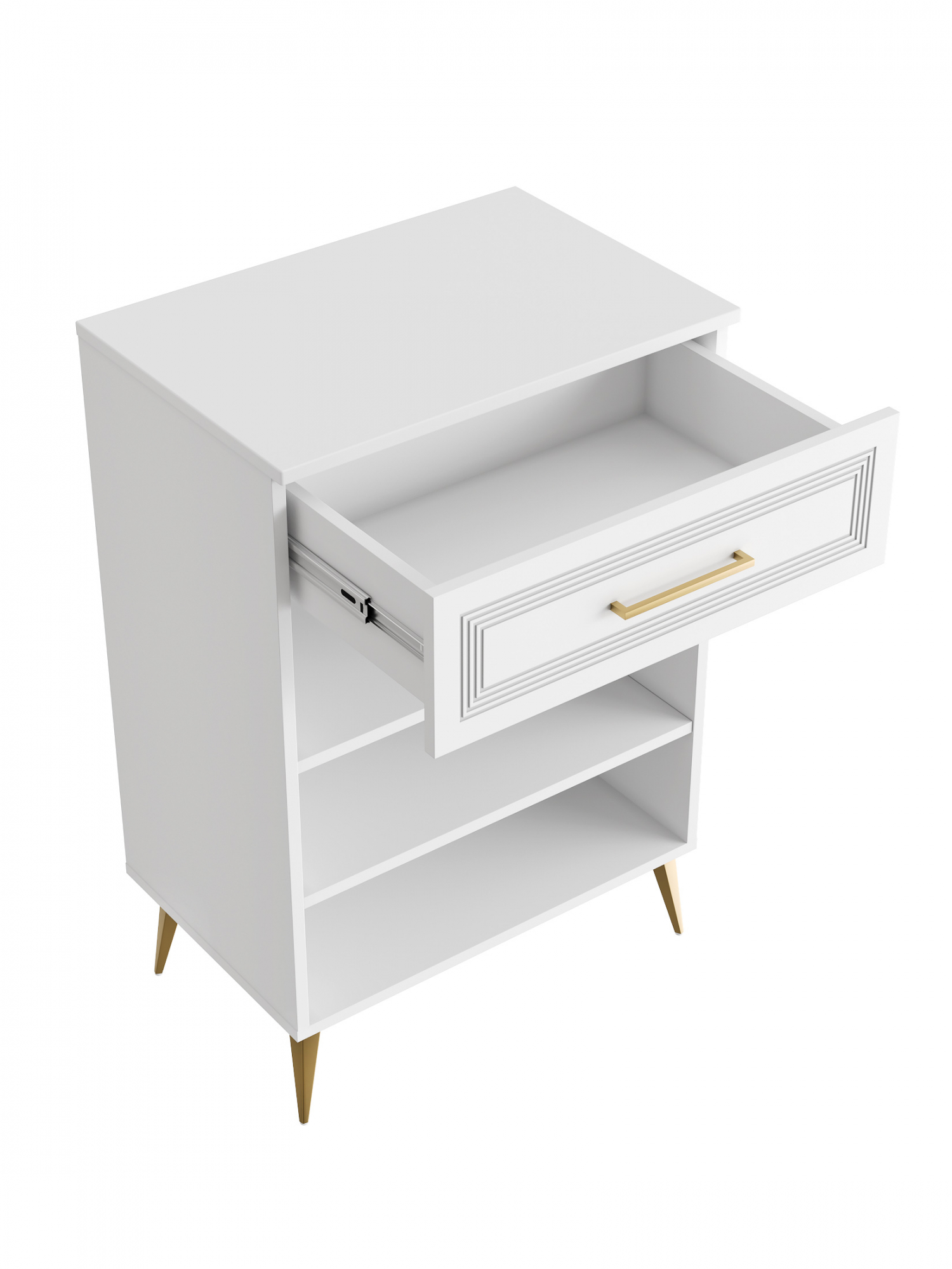 Коллекция «Оливия» — это современная мебель с изысканным дизайном. Ее отличительная черта — изящная фрезеровка фасадов, а золотая фурнитура добавляет роскошный акцент, подчеркивая элегантность и статусность.