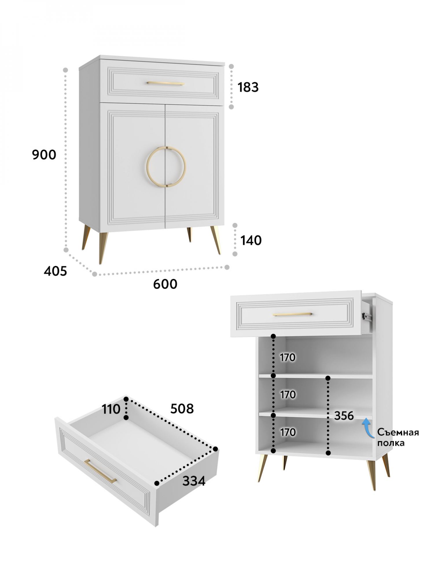 - Корпус изготовлен из ЛДСП толщиной 16 мм цвета "белый бриллиант".
