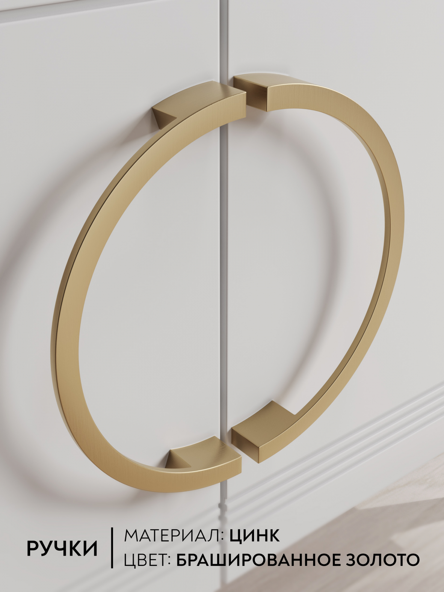 - Металлические фигурные ручки в цвете брашированное золото, блеск приглушенный.
