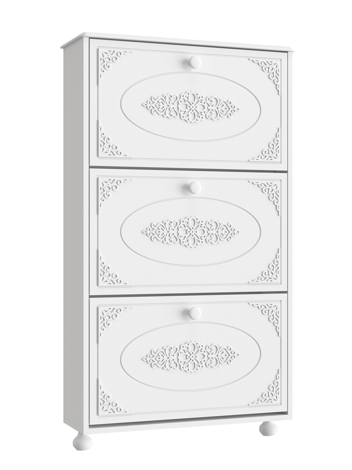 Тумба для обуви Ассоль АС-46 станет настоящим украшением вашего дома. Изделие поможет раз и навсегда забыть о проблеме разбросанной обуви. Тумба оснащена тремя откидными дверцами со специальными отсеками для аккуратного размещения обуви. Сверху на тумбе вы сможете расположить ключи, бумажник, косметику и аксессуары для обуви. Объемный изысканный узор придает нотки элегантности и роскоши. Высота опоры 65 мм. Фурнитура: ручки пластик, деревянные опоры. Имеет только две опоры (ножки), при монтаже необходима фиксация к стене.