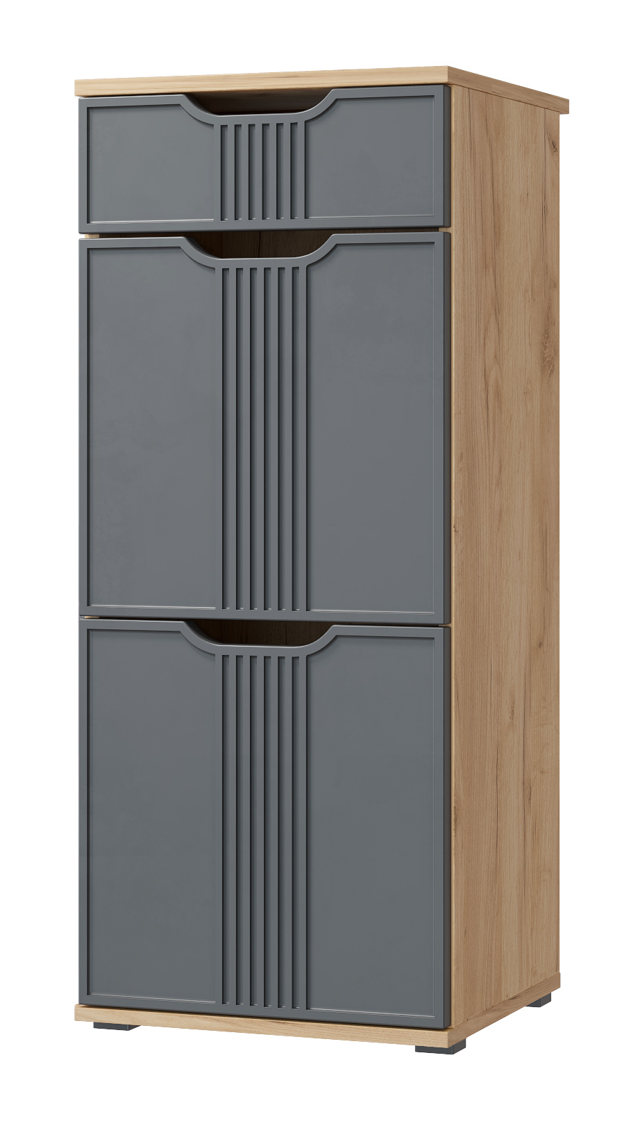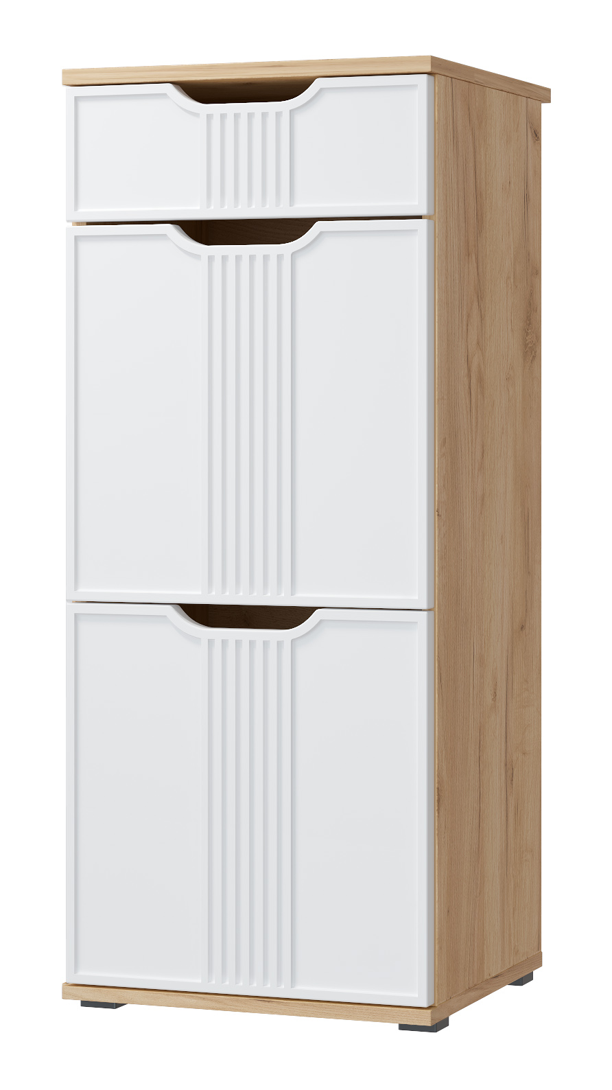 Тумба Эмилия ЭЛ-3 изготовлена из ЛДСП 16 мм, фасады МДФ. Тумба оснащена одним выдвижным ящиком, за дверьми расположены три полки для размещения обуви и других вещей. Сочетая тумбу с другими модулями из коллекции Эмилия, Вы можете создать стильную и лаконичную прихожую у себя дома. Свес крышки в 30 мм обеспечит прилегание к стене с любым плинтусом. Фурнитура: телескопические направляющие полного выдвижения, петли с доводчиками.