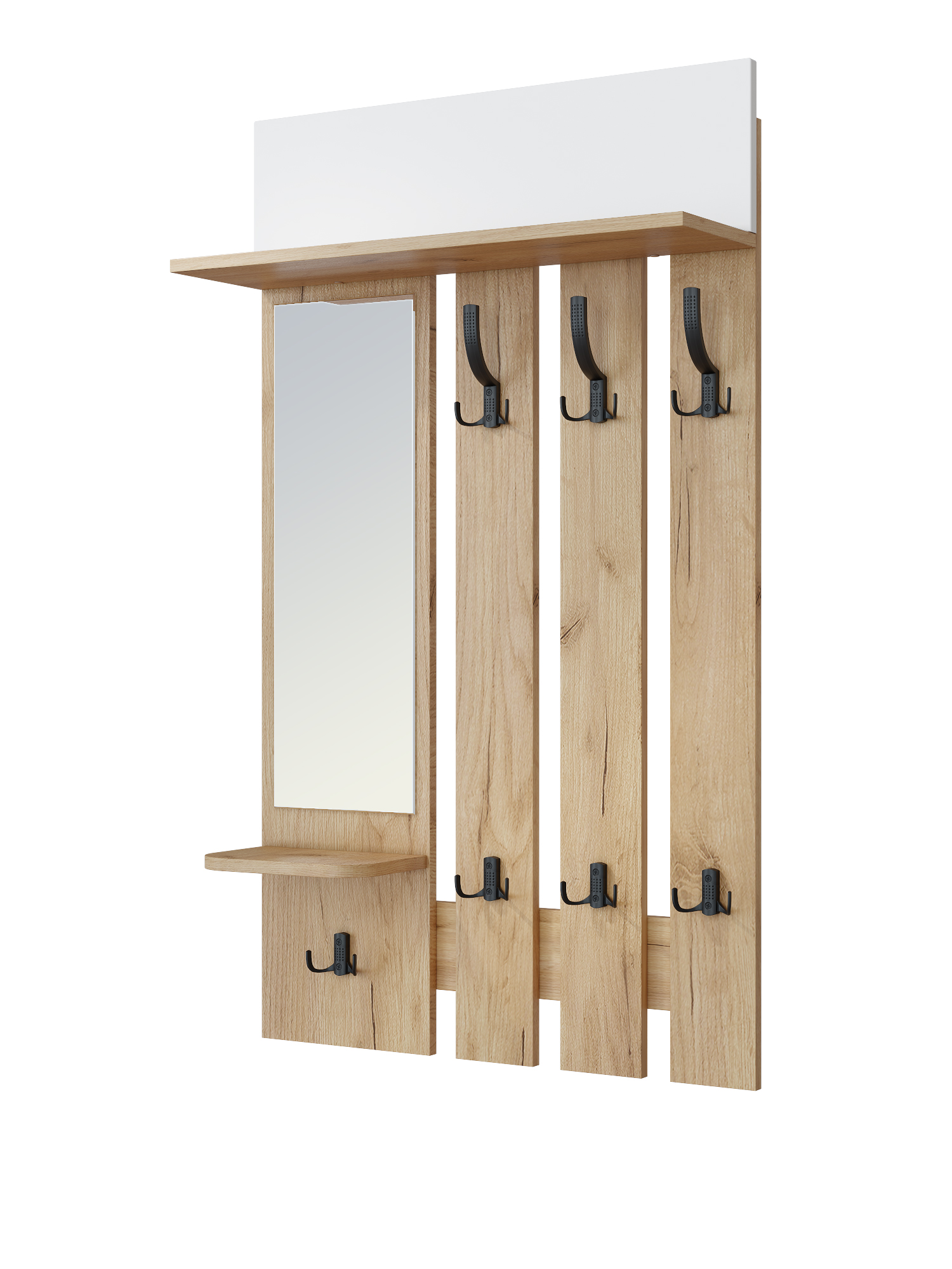 Вешалка Эмилия ЭЛ-49 компактна и функциональна, поэтому органично дополнит любой интерьер вашей прихожей. Вешалка состоит из нескольких объединенных панелей лдсп, трех двойных и трех тройных крючков, благодаря чему на ней можно с легкостью разместить верхнюю одежду нескольких человек. Крючки металлические, максимальная допустимая нагрузка до 15 кг на один крючок. Сочетая вешалку с другими модулями из коллекции Эмилия, вы можете создать стильную и лаконичную прихожую у себя дома. Сборка универсальная.