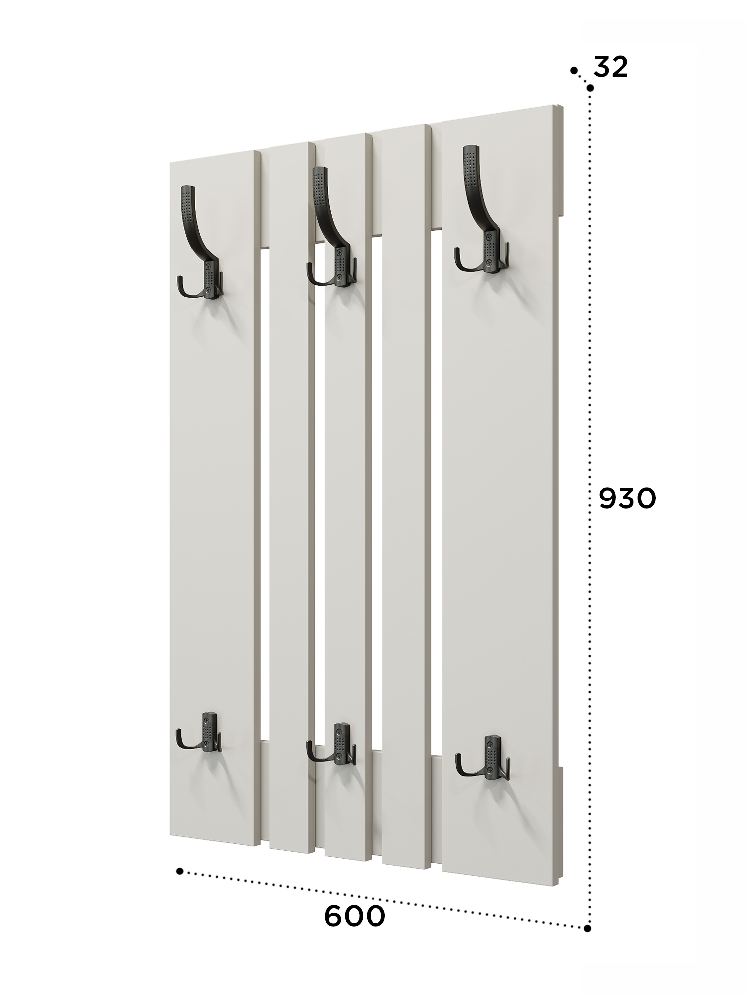Вешалка Эмилия ЭЛ-6 компактна и функциональна, поэтому органично дополнит любой интерьер вашей прихожей. Вешалка состоит из нескольких объединенных панелей лдсп, трех двойных и трех тройных крючков, благодаря чему на ней можно с легкостью разместить верхнюю одежду нескольких человек. Крючки металлические, максимальная допустимая нагрузка до 15 кг на один крючок. Сочетая вешалку с другими модулями из коллекции Эмилия, Вы можете создать стильную и лаконичную прихожую у себя дома.