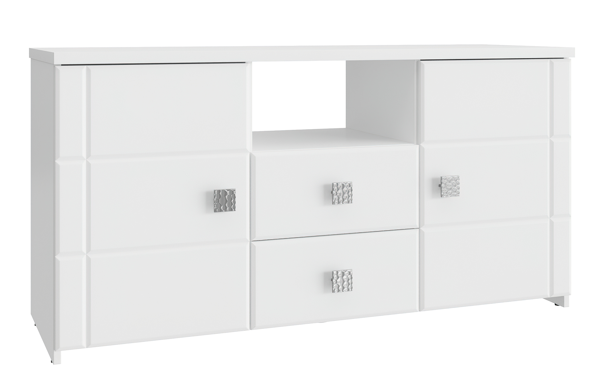 Тумба Изабель ИЗ-53К для ценителей современного дизайна. Наполнение тумбы: два выдвижных ящика, ниша для аппаратуры или книг и два закрытых отделения с полками. Столешница выполнена из ЛДСП 25 мм, дно ящика двп 3 мм. Фурнитура: металлизированные квадратные ручки, телескопические направляющие полного выдвижения, петли с доводчиками.
