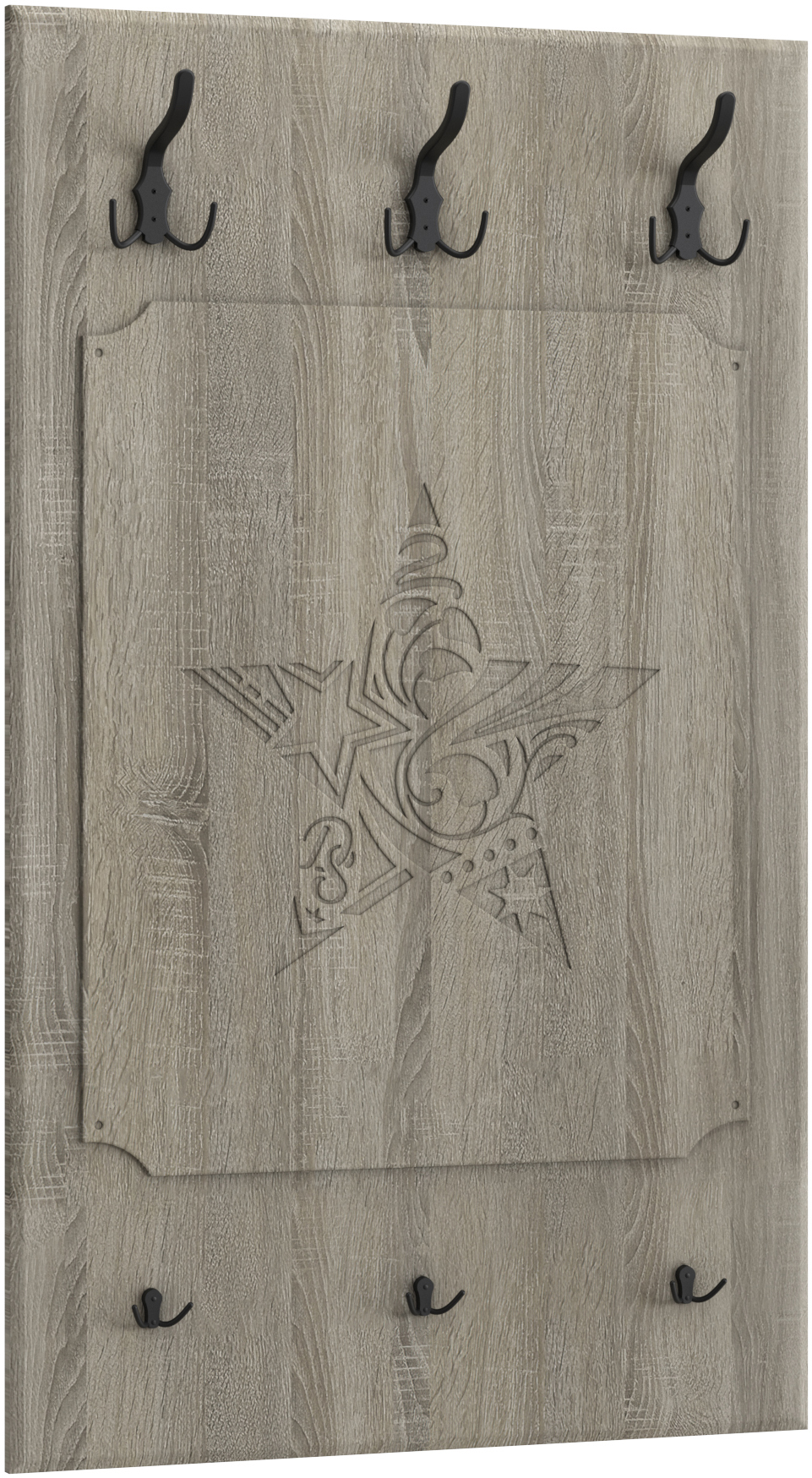 Настенная вешалка ДримСтар ДС-31 компактная и функциональная, изготовлена из МДФ, включает в себя шесть крепких крючков черного цвета для верхней одежды и аксессуаров. Вешалка прекрасно будет смотрется в комплекте с зеркалом ДС-41 и тумбой под обувь ДС-16.