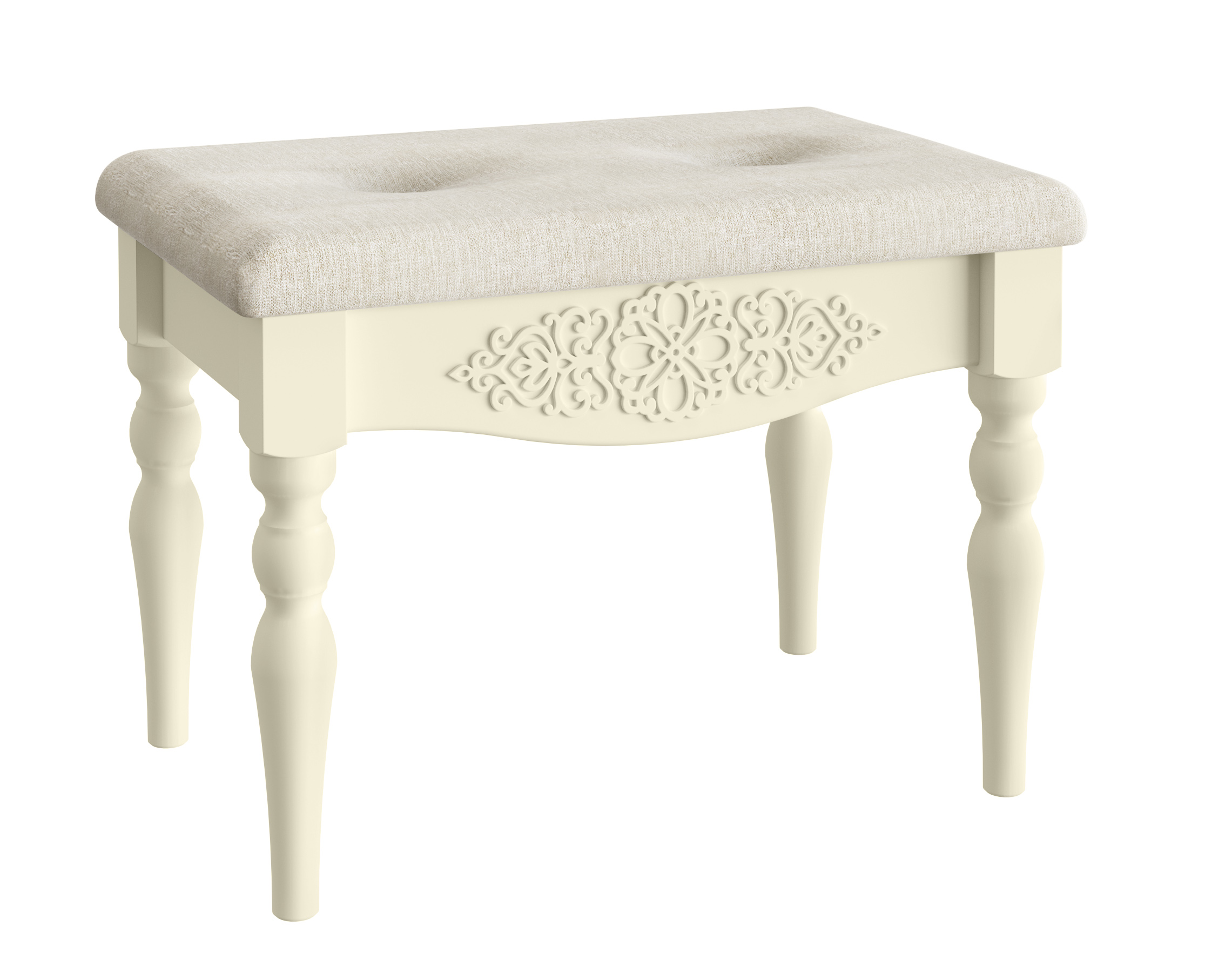 Банкетка Ассоль АС-33 подойдёт для гостиной и спальни. Резные боковины, красивая обивка (ткань "anabelle №1", 100% полиэстер). Подойдет к столам из линейки Ассоль АС-36. Опоры деревянные.