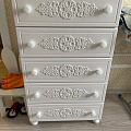 Роскошный комод из коллекции мебели Ассоль АС-62, несомненно, станет украшением Вашей гостиной или спальни. Выдвижные ящики оснащены современными телескопическими направляющими полного выдвижения, обеспечивающие плавное и бесшумное выдвижение просторных ящиков. Мебель изготовлена из качественной ламинированной ДСП 16 мм. В оформлении фасадов МДФ применяется уникальная технология нанесения объемного узора 3D. Внутренние размеры ящика ш490 х г334 х в110 мм. Высота опоры 65 мм.
