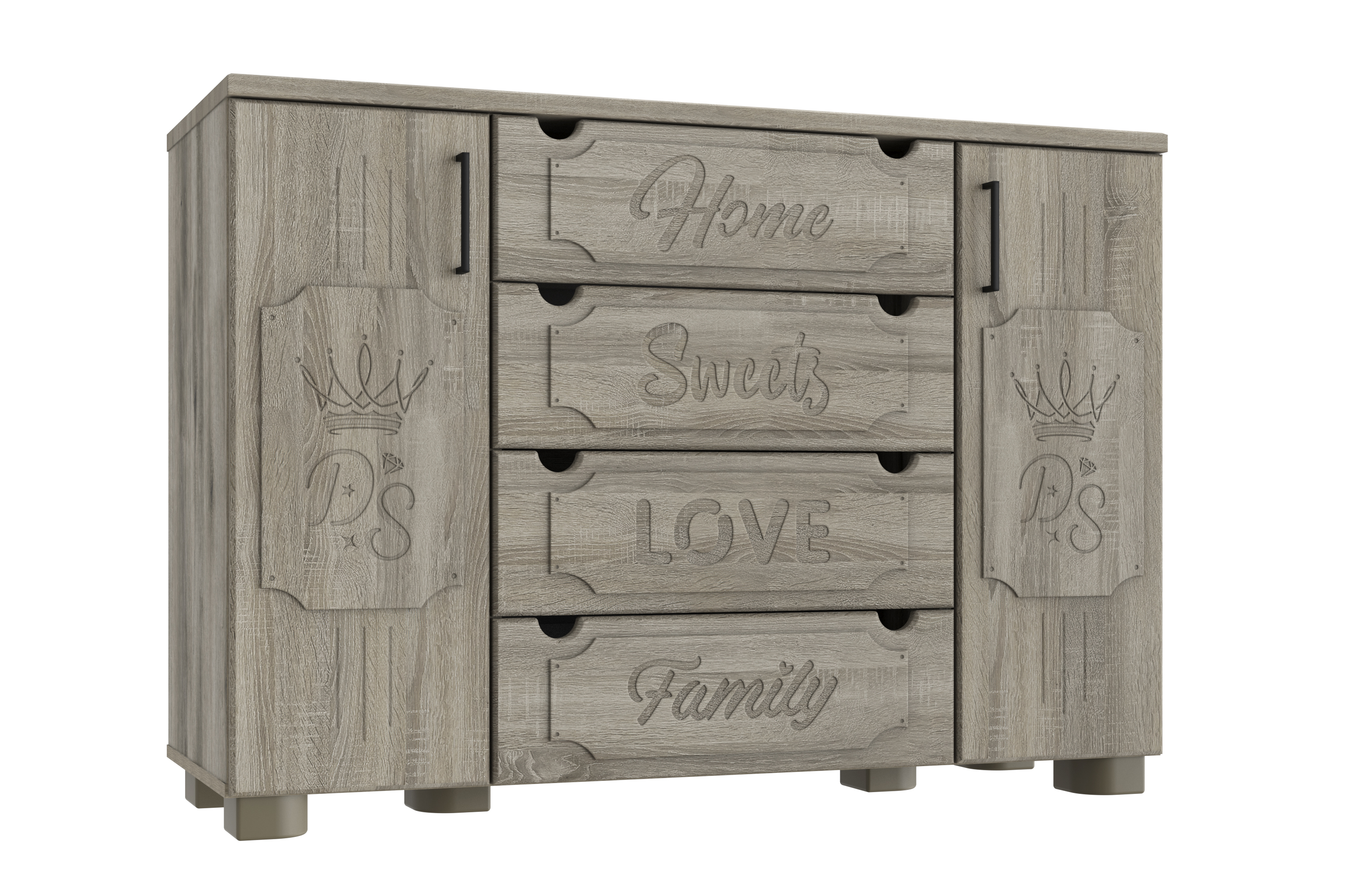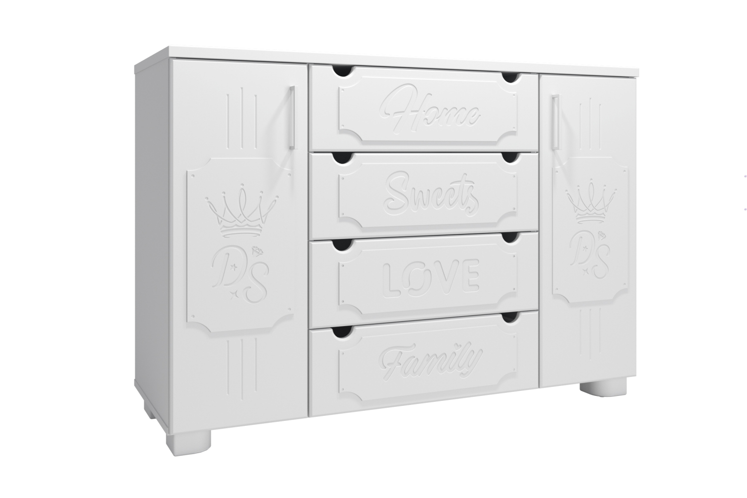 Комод ДримСтар ДС-13 несомненно станет украшением Вашей гостиной или спальни. Комод оборудован посередине четырьмя вместительными выдвижными ящиками для белья и постельных аксессуаров. По бокам находятся тумбы с дверцами, за которыми по две полки. Комод установлен на ножки. Выдвижные ящики оснащены современными телескопическими направляющими полного выдвижения, обеспечивающие плавное и бесшумное выдвижение ящиков, а на дверцах установлены петли с доводчиками.