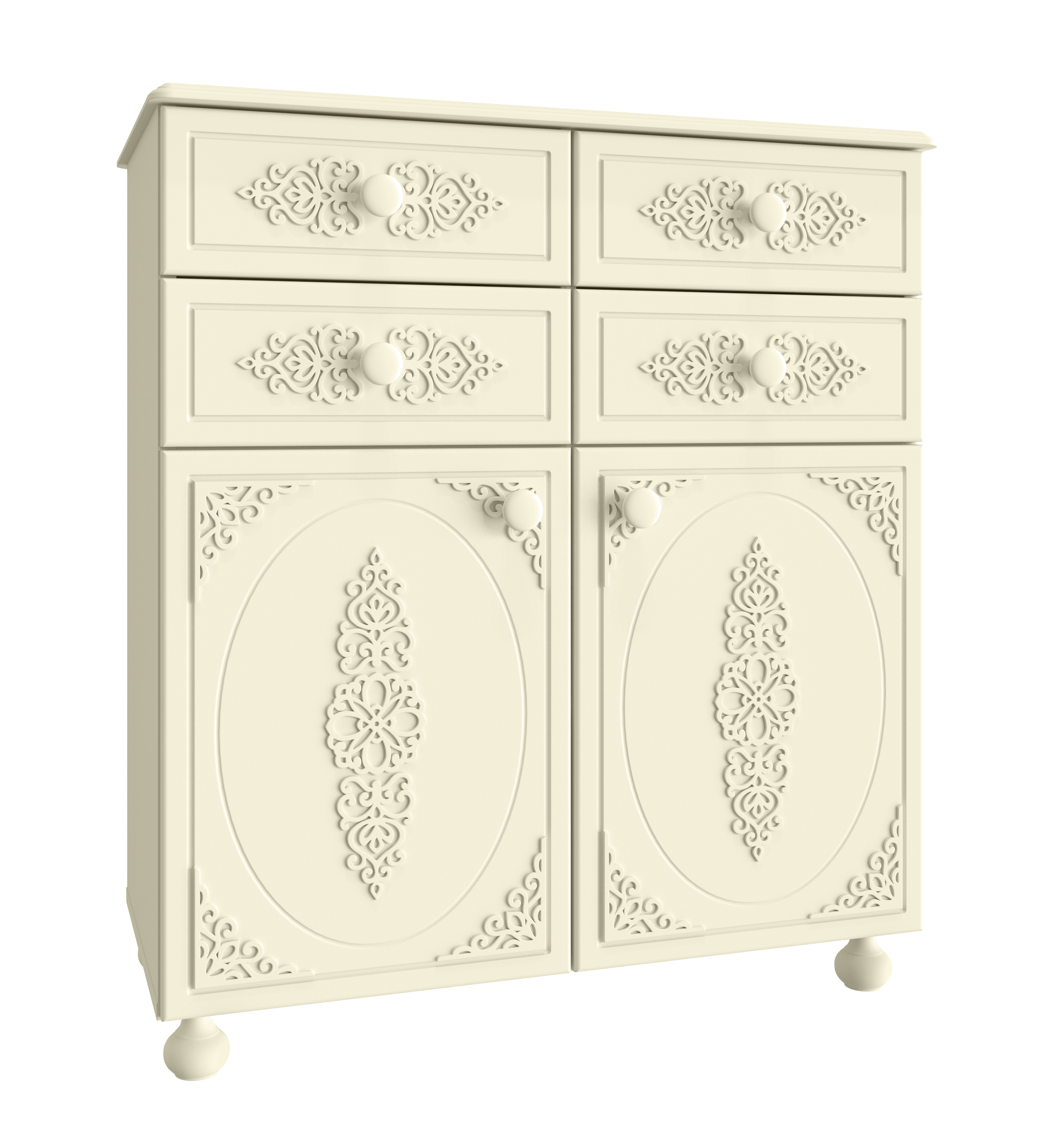 Комод из коллекции мебели Ассоль АС-18, несомненно, станет украшением Вашей гостиной, спальни или прихожей. Выдвижные ящики оснащены современными телескопическими направляющими, обеспечивающие плавное и бесшумное выдвижение ящиков, а на дверцах установлены петли с доводчиками. Вы можете создать самостоятельно замечательный мебельный комплект, дополнив комод зеркалом АС-44. В оформлении фасадов МДФ применяется уникальная технология нанесения объемного узора 3D. Высота опоры 65 мм. Фурнитура: петли с доводчиками, ручки пластик, телескопические направляющие полного выдвижения без доводчиков, опоры деревянные.