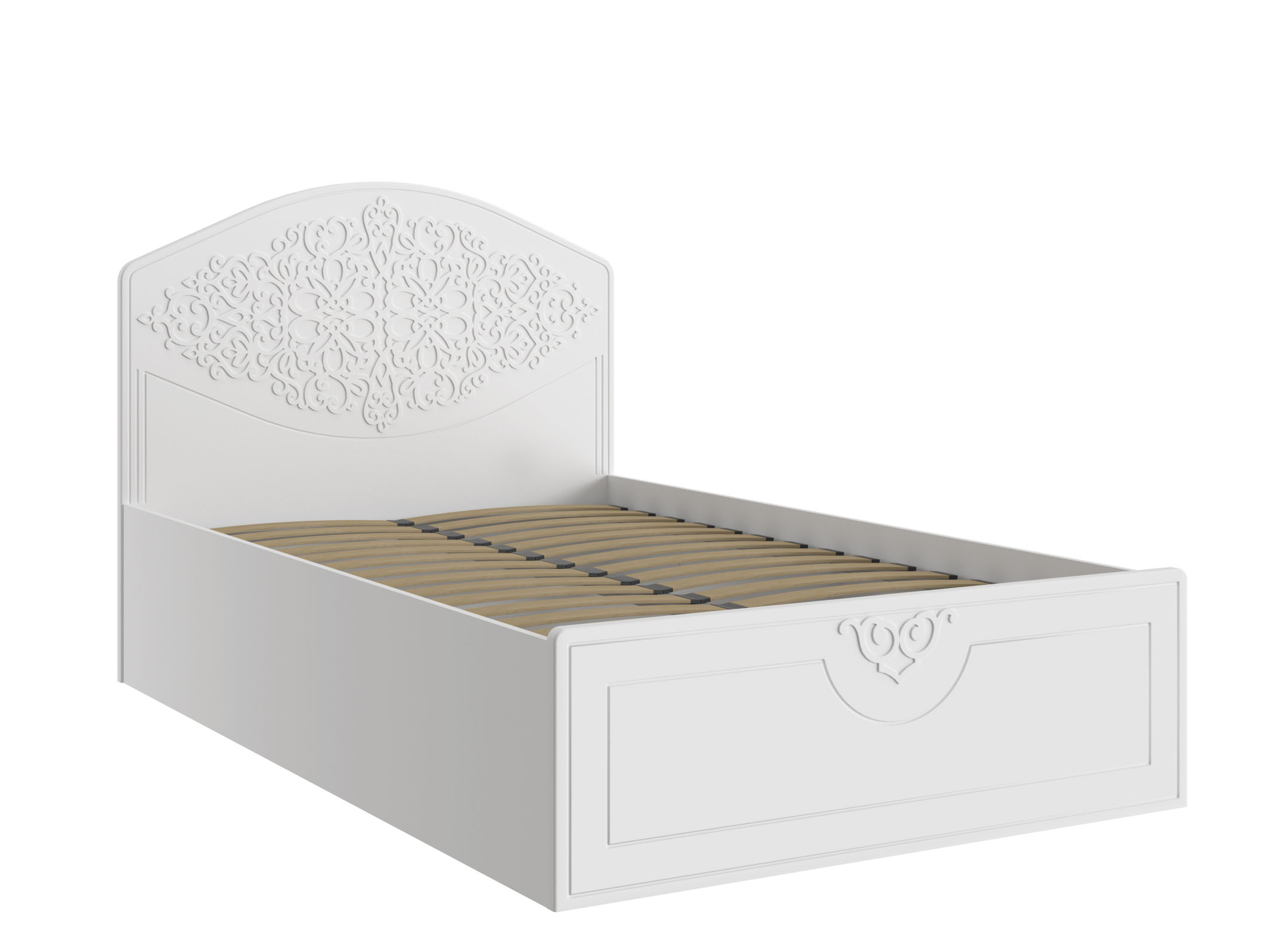 Кровать с подъемным механизмом Ассоль АС-68 имеет высокое и шикарное изголовье. Каждый завиток узора будет восхищать вас, ведь такой мебели нет ни у кого. Коллекция Ассоль эксклюзивна по своему дизайну. Кровать оснащена подъемным механизмом, обеспечивающим доступ в короб для хранения постельного белья. Короб разделен на три одинаковых сегмента с ножками, изготовлен из ЛДСП. Ламель кладется на специальные мебельные полки и угловые стяжки. Высота изножья 420 мм. Основание кровати: ламели с подъемным механизмом. Особенности: короб для хранения постельного белья. Рекомендуемый размер матраса в мм: 1200х2000х200-230. Мебель изготовлена из качественной ламинированной ДСП 16 и 25 мм. В оформлении фасадов МДФ применяется уникальная технология нанесения объемного узора 3D.