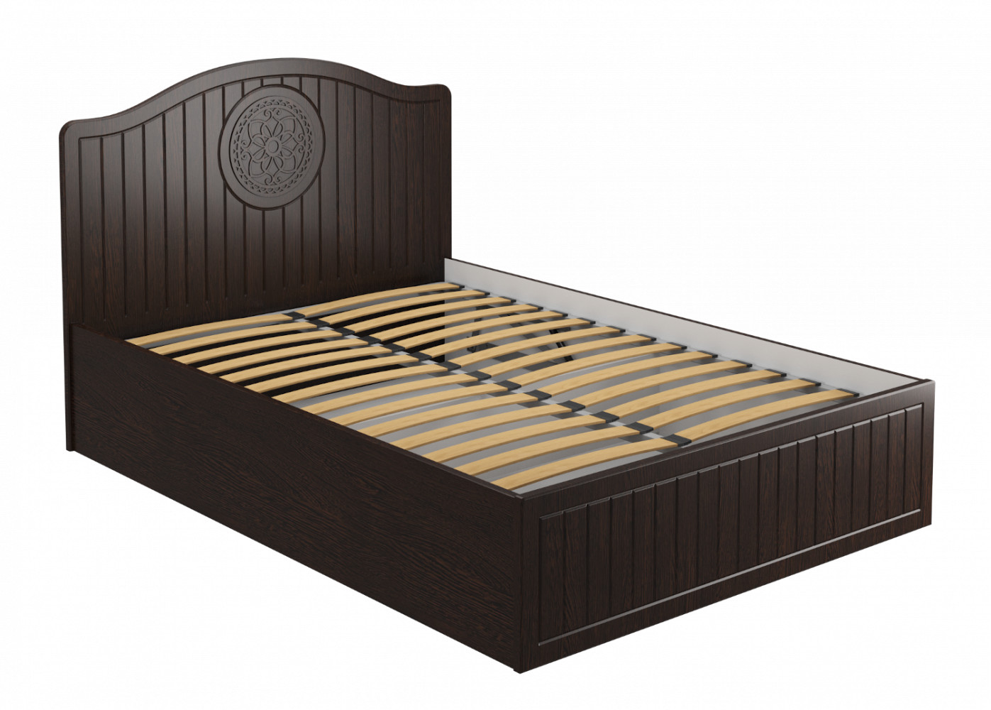 Кровать полутороспальная с подъемным механизмом Монблан МБ-605К - элегантная кровать станет идеальным элементом для создания роскошного интерьера в спальной комнате. Модель оснащена прочным ортопедическим основанием (ламели) с подъемным механизмом и коробом для хранения постельного белья. Модульная система мебели Монблан - это удачное сочетание качества и привлекательного дизайна, которое не оставит равнодушным никого. Рекомендуемый размер матраса в мм: 1400х2000х160-200. Высота изножья 410 мм. Изголовье, изножье и царги выполнены из МДФ 25 мм. Матрас утопает в основание на 50 мм.