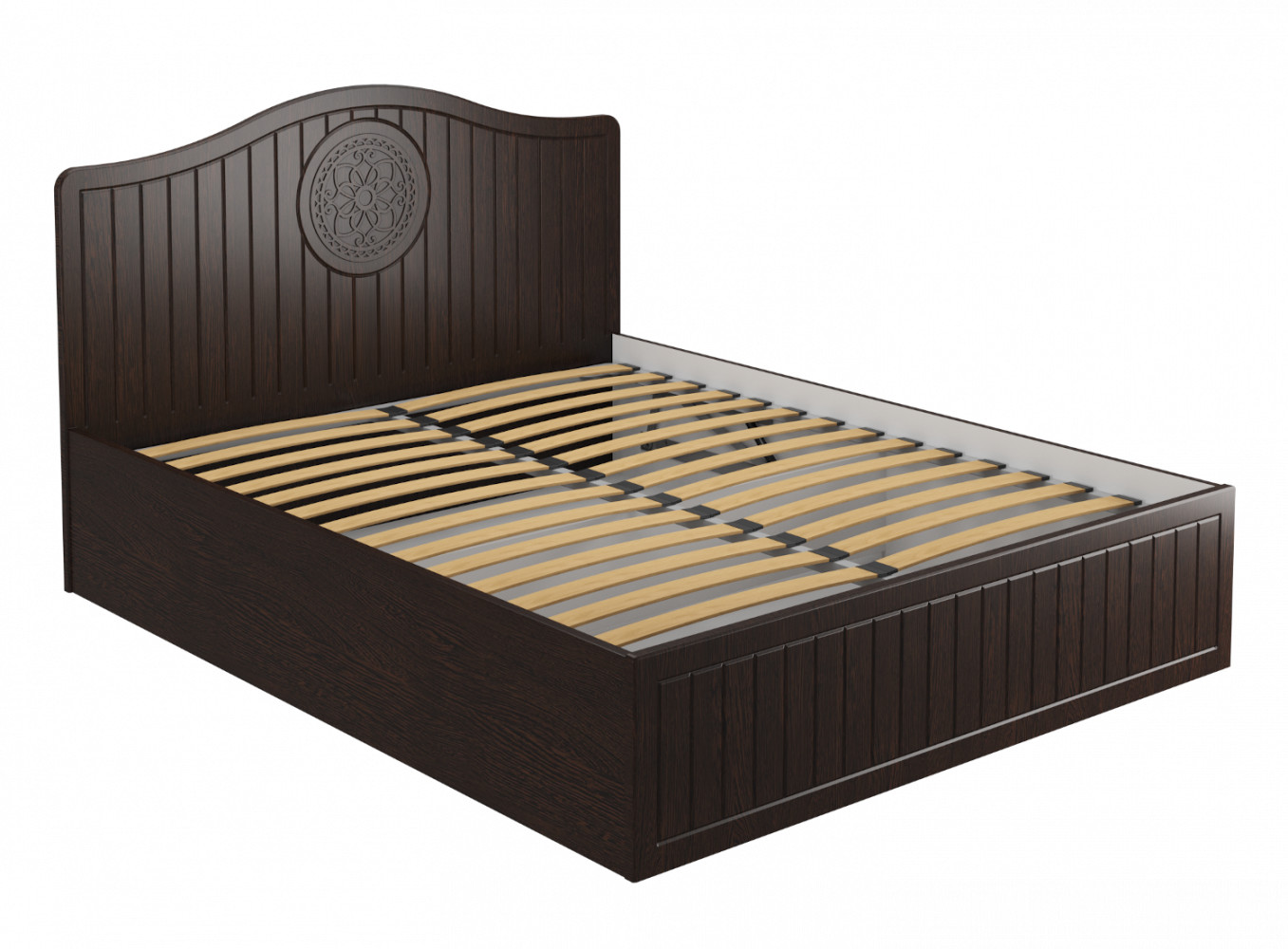 Кровать двуспальная Монблан МБ-606К - элегантная кровать станет идеальным элементом для создания роскошного интерьера в спальной комнате. Модель оснащена прочным ортопедическим основанием (ламели) с подъемным механизмом и коробом для хранения постельного белья. Модульная система мебели Монблан - это удачное сочетание качества и привлекательного дизайна, которое не оставит равнодушным никого. Рекомендуемый размер матраса в мм: 1600х2000х160-200. Высота изножья 410 мм. Изголовье, изножье и царги выполнены из МДФ 25 мм. Матрас утопает в основание на 50 мм.