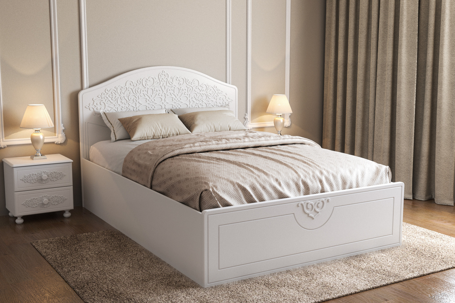 «Ассоль» выпускается только в одном цвете «белое дерево». Для нее характерен мягкий мерцающий глянец и эксклюзивный узор, повторяющийся на фасадах всех моделей. В линейку входит более 50 модулей, отлично сочетающихся друг с другом и позволяющих создавать индивидуальный интерьер.