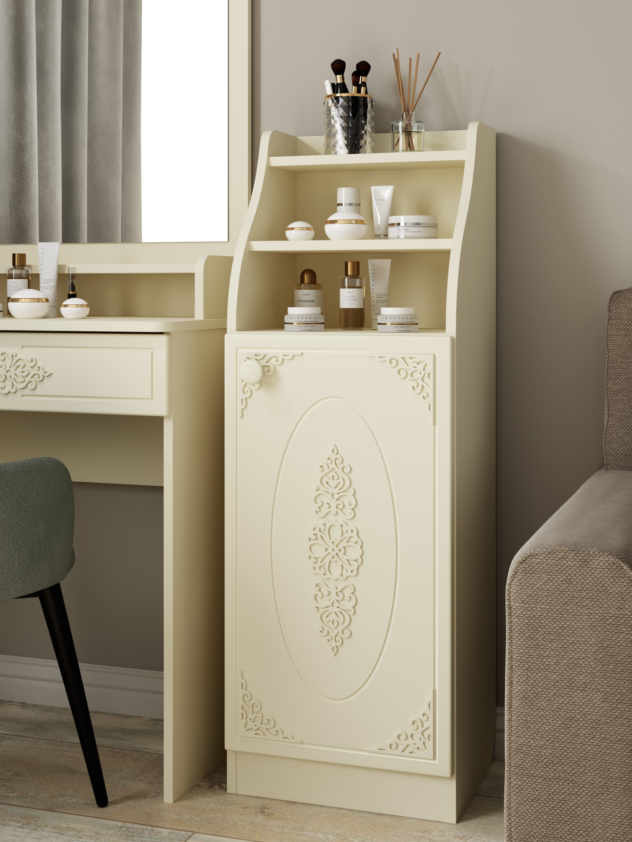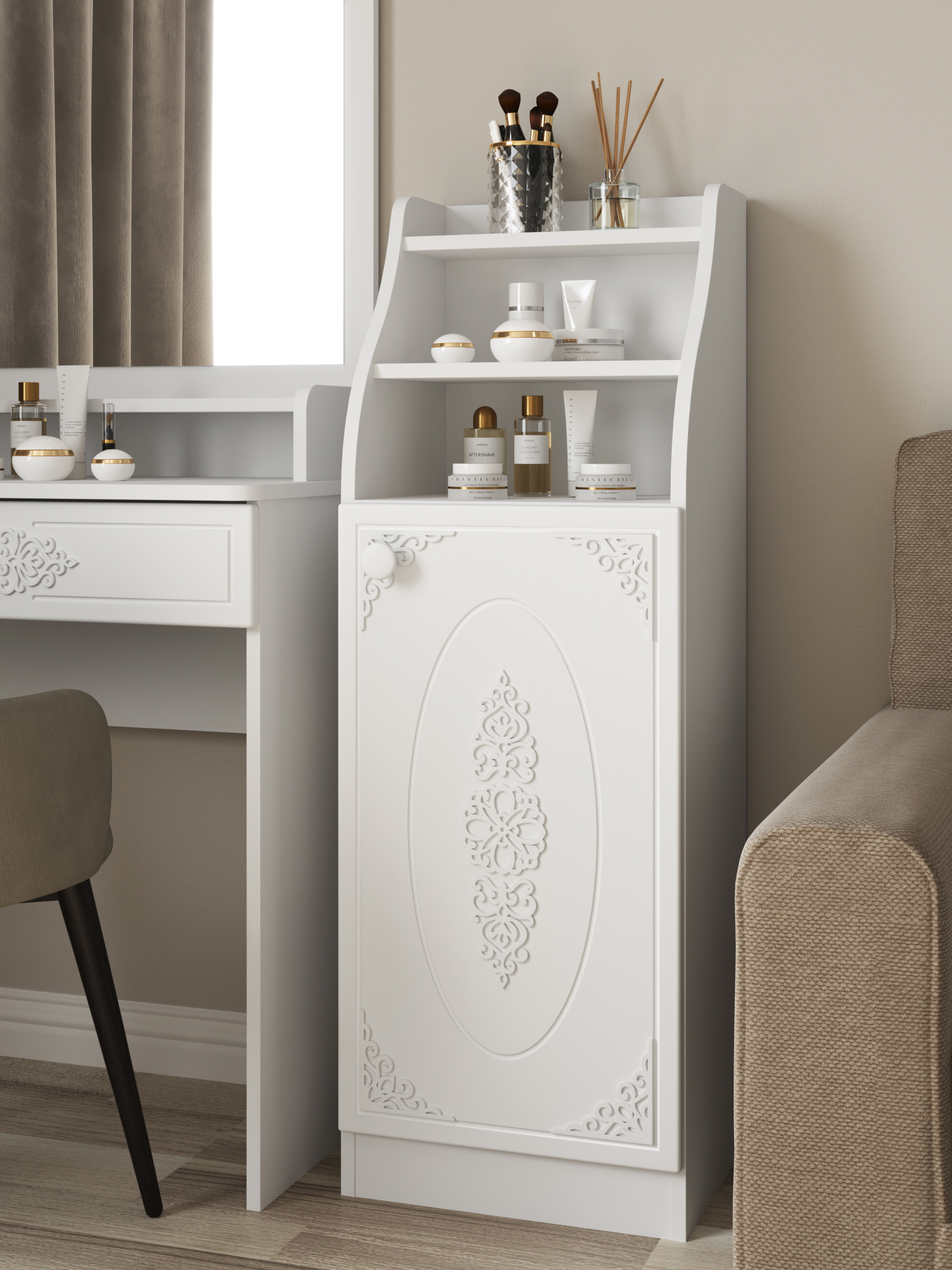 Шкаф Ассоль АС-64, исполненный в стиле Прованс, прекрасно подойдет для вашей квартиры или загородного дома. Выполненный из качественных материалов, этот шкаф порадует Вас своей практичностью и долговечностью. Особый шарм изделию придает уникальный фасад с изящным объемным узором. Шкаф имеет две открытых верхних ниши и закрытые распашной дверцей полки внизу. Модуль может быть собран с дверцей, открывающейся как на правую, так и на левую сторону. Для этого необходимо по часовой стрелке развернуть фасад изделия на 180 градусов. Дверца крепится на петли с доводчиками. Фурнитура: ручки пластик. Важная информация. Мебель доставляется в разобранном виде, в упаковках.