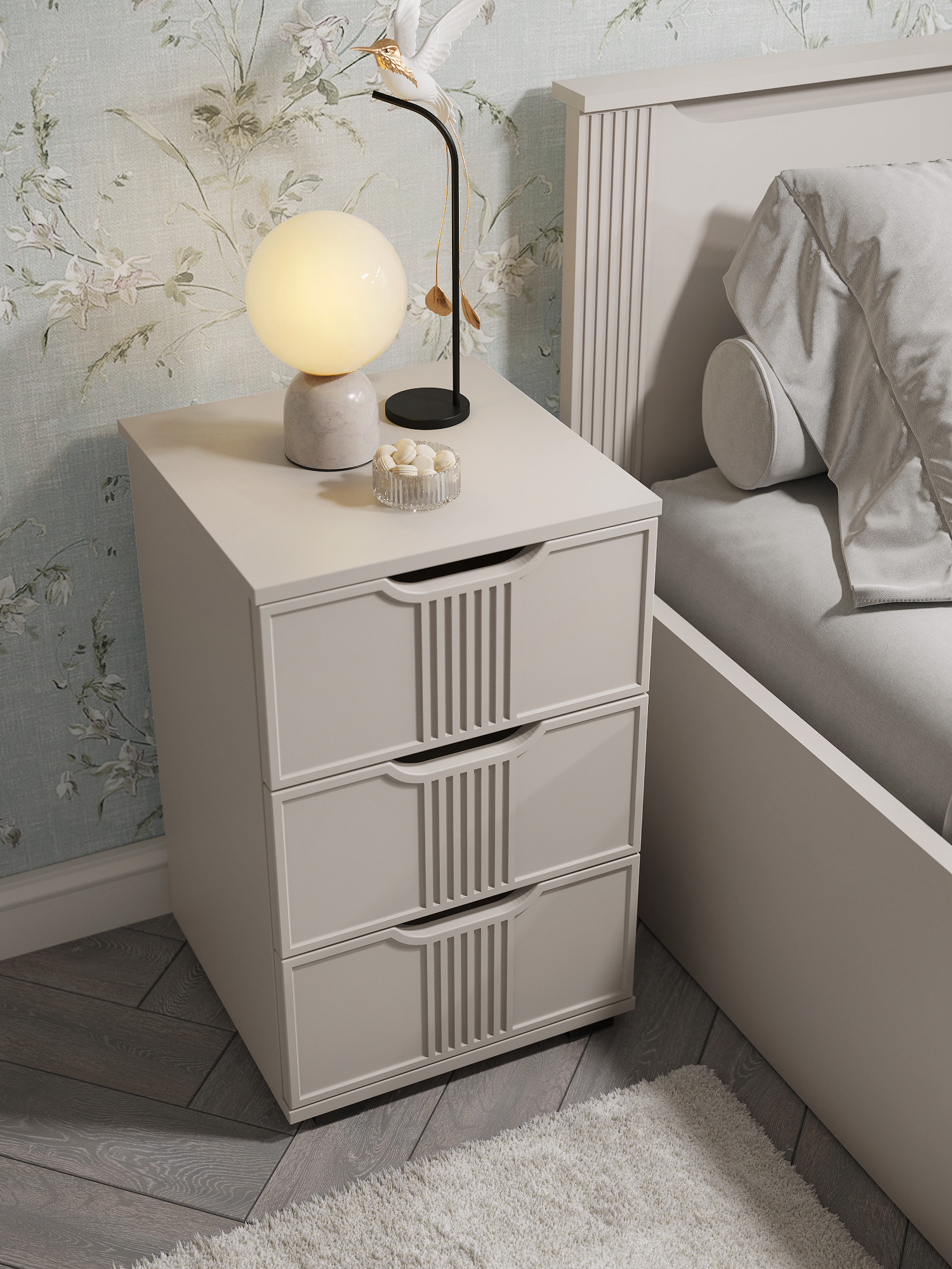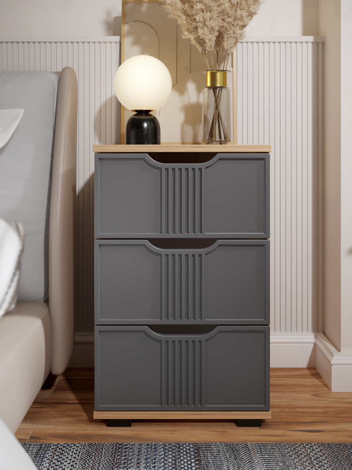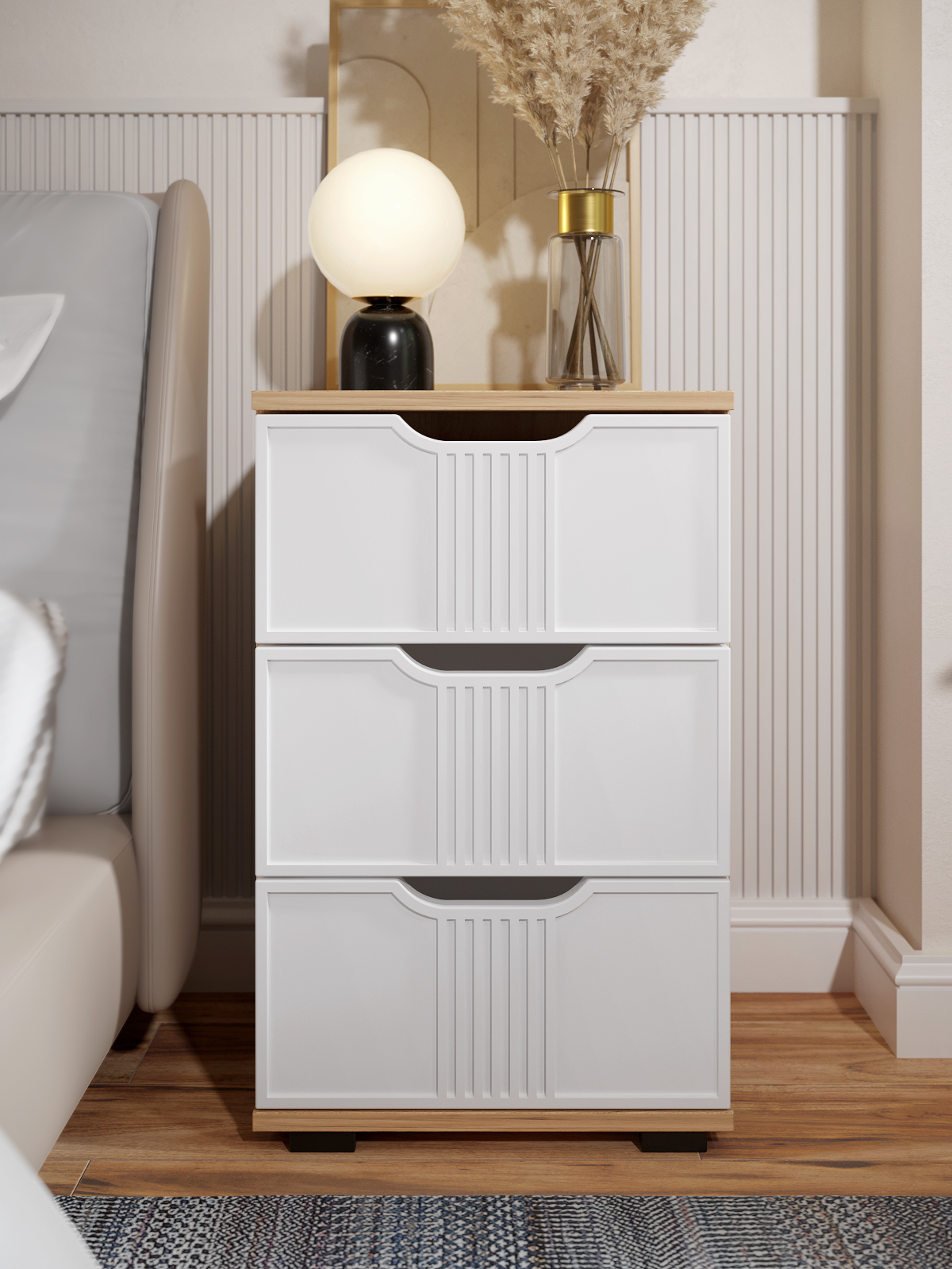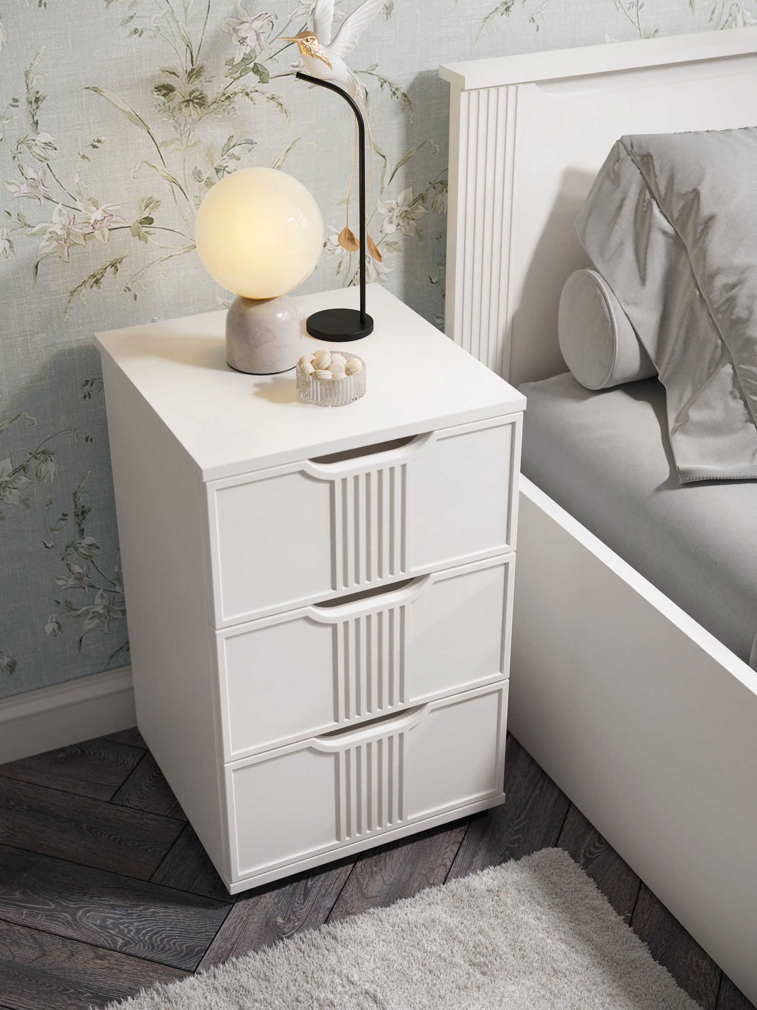 Тумба прикроватная Эмилия ЭЛ-26 прекрасно подойдет в интерьер современной спальни или любой другой комнаты. Тумба изготовлена из ЛДСП 16 мм, фасады МДФ. Свес крышки в 30 мм обеспечит прилегание к стене с любым плинтусом. Внутренние размеры ящика ш304 х г284 х в110 мм. Высота опоры 20 мм. Фурнитура: телескопические направляющие полного выдвижения без доводчиков.