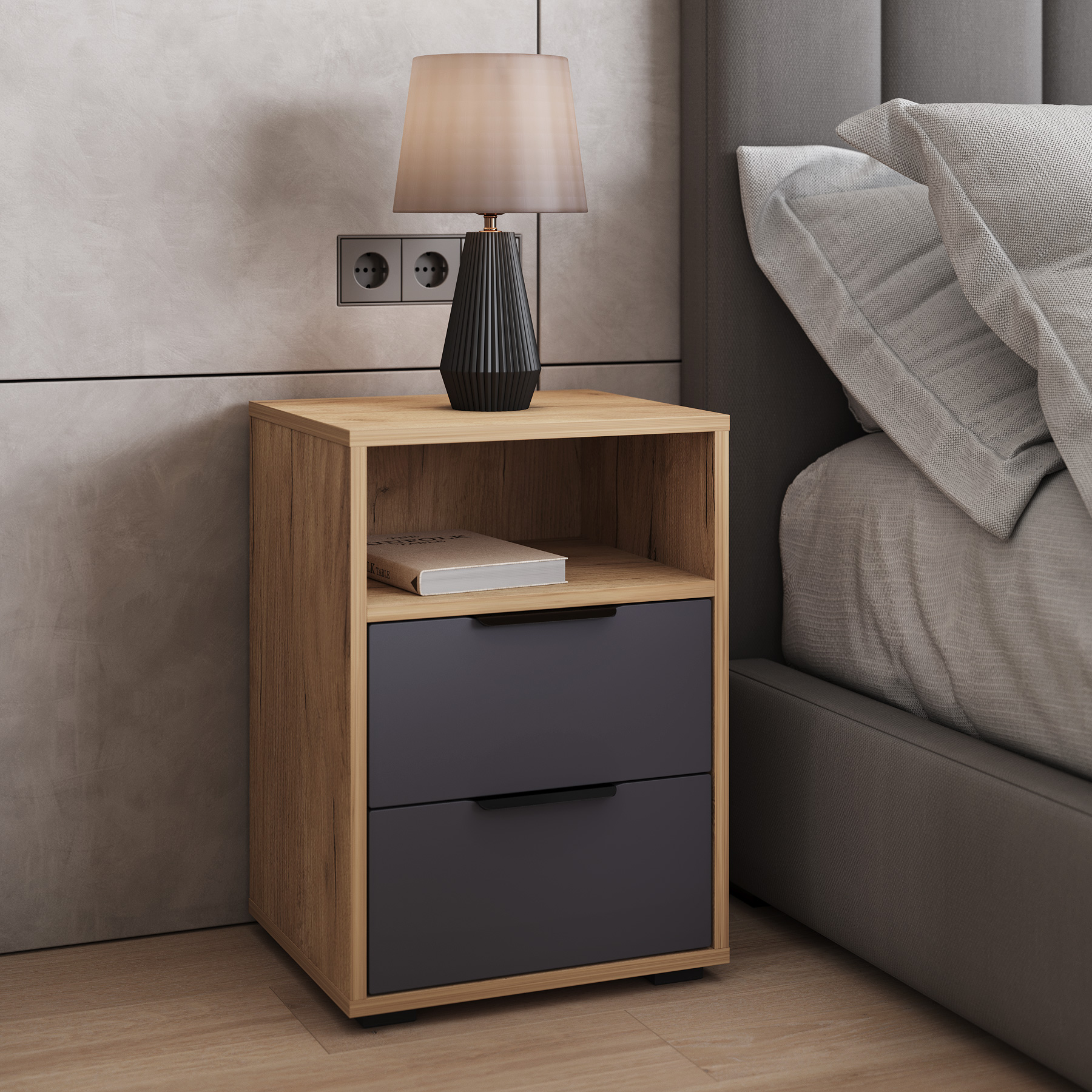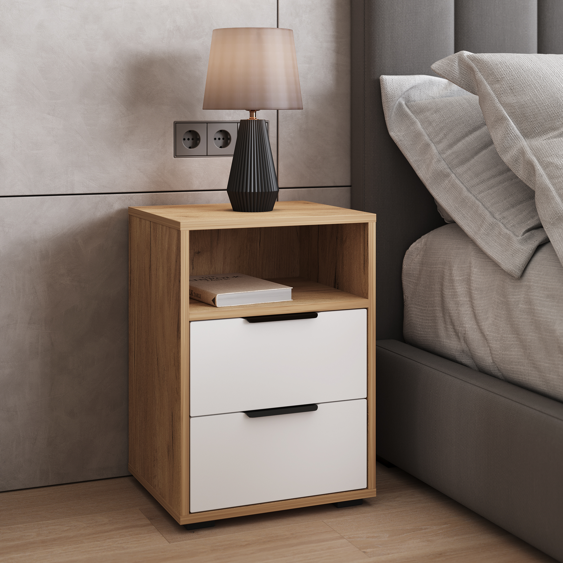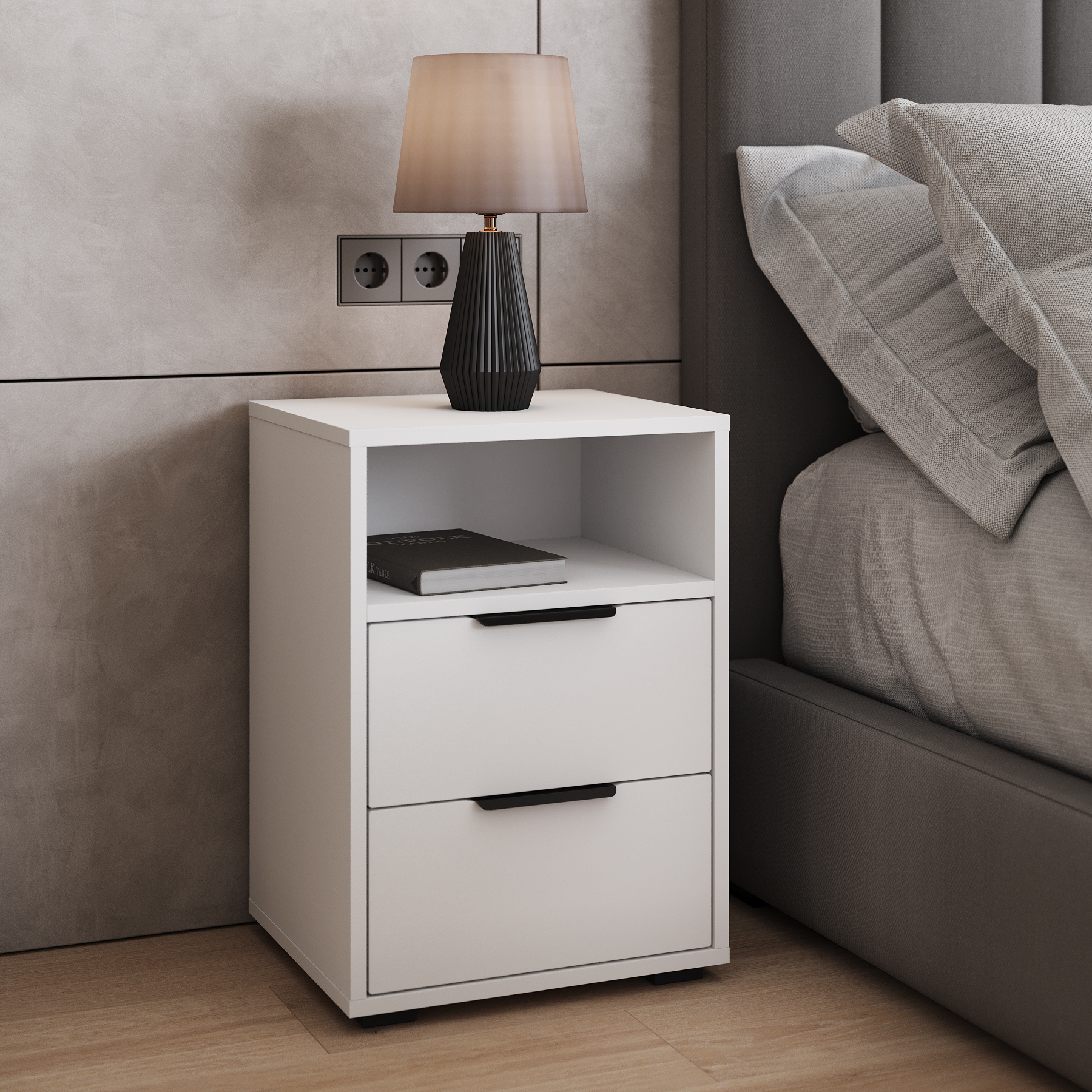 Тумба прикроватная Оптима ОП-07 станет замечательным дополнением для обустройства комфортной и функциональной комнаты. Тумба оснащена открытой полкой и двумя выдвижными ящиками для различных мелочей. Высота опоры 20 мм. Фурнитура: ручки металл, телескопические направляющие полного выдвижения без доводчиков, опоры регулируемые.