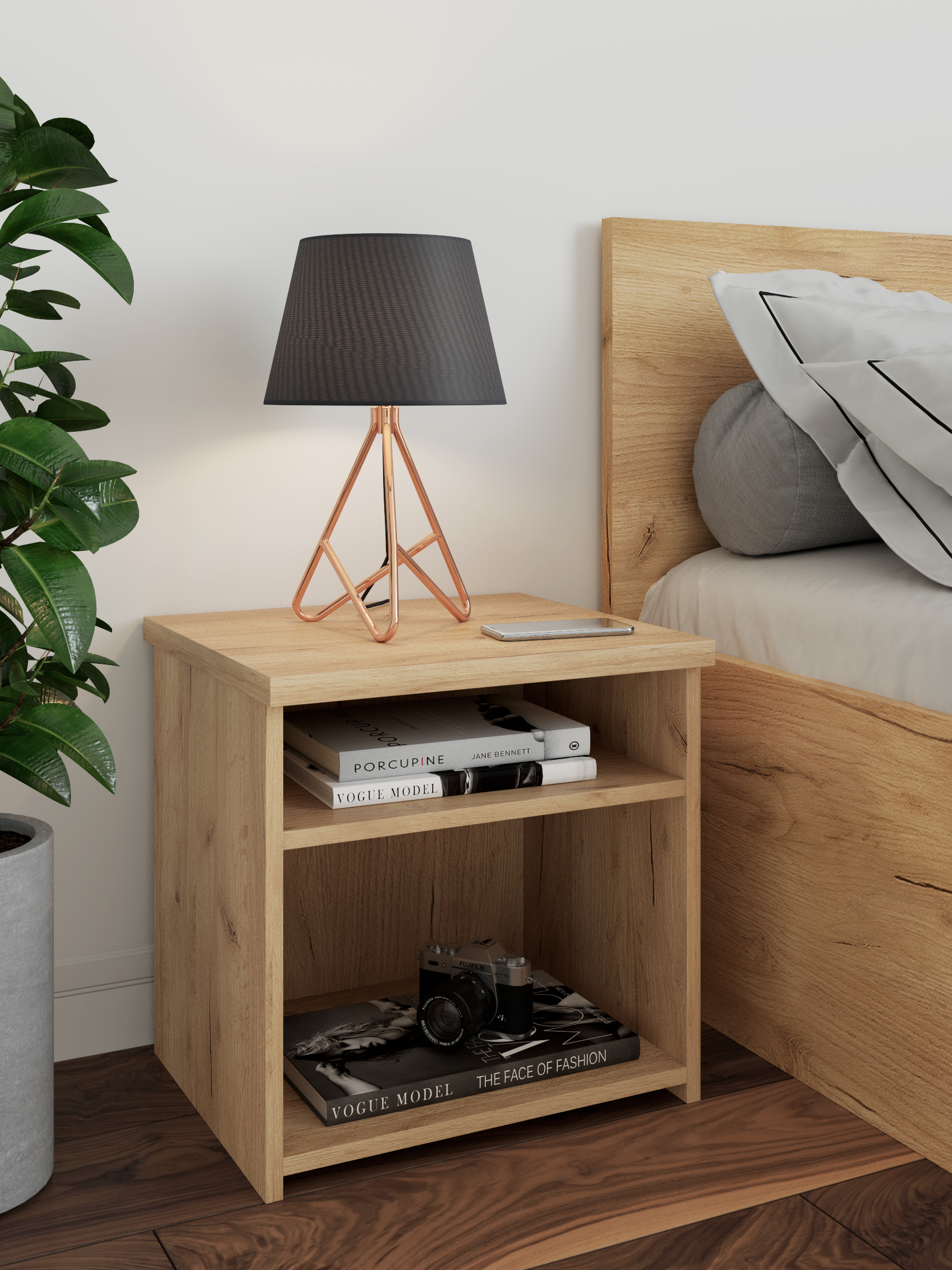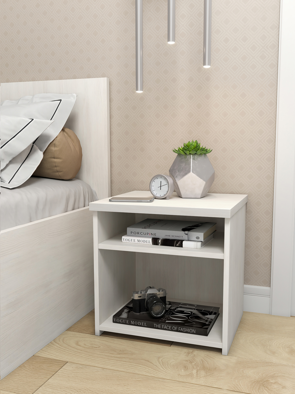 Тумба прикроватная Виктория ВИ-15 оснащена двумя полками для удобного расположения книг, журналов и других аксессуаров. Столешница изготовлена из ЛДСП 25 мм, корпус 16 мм.