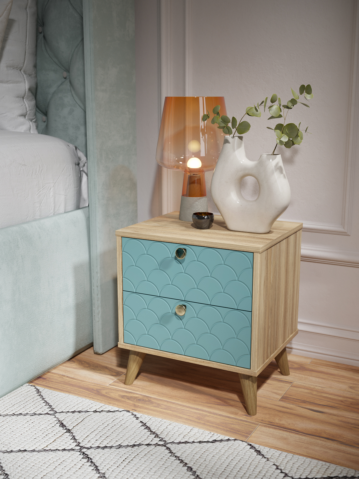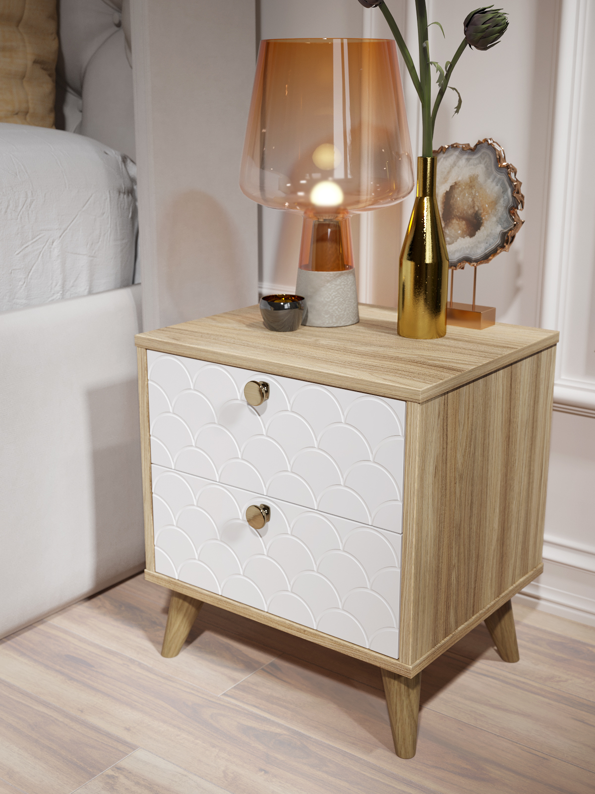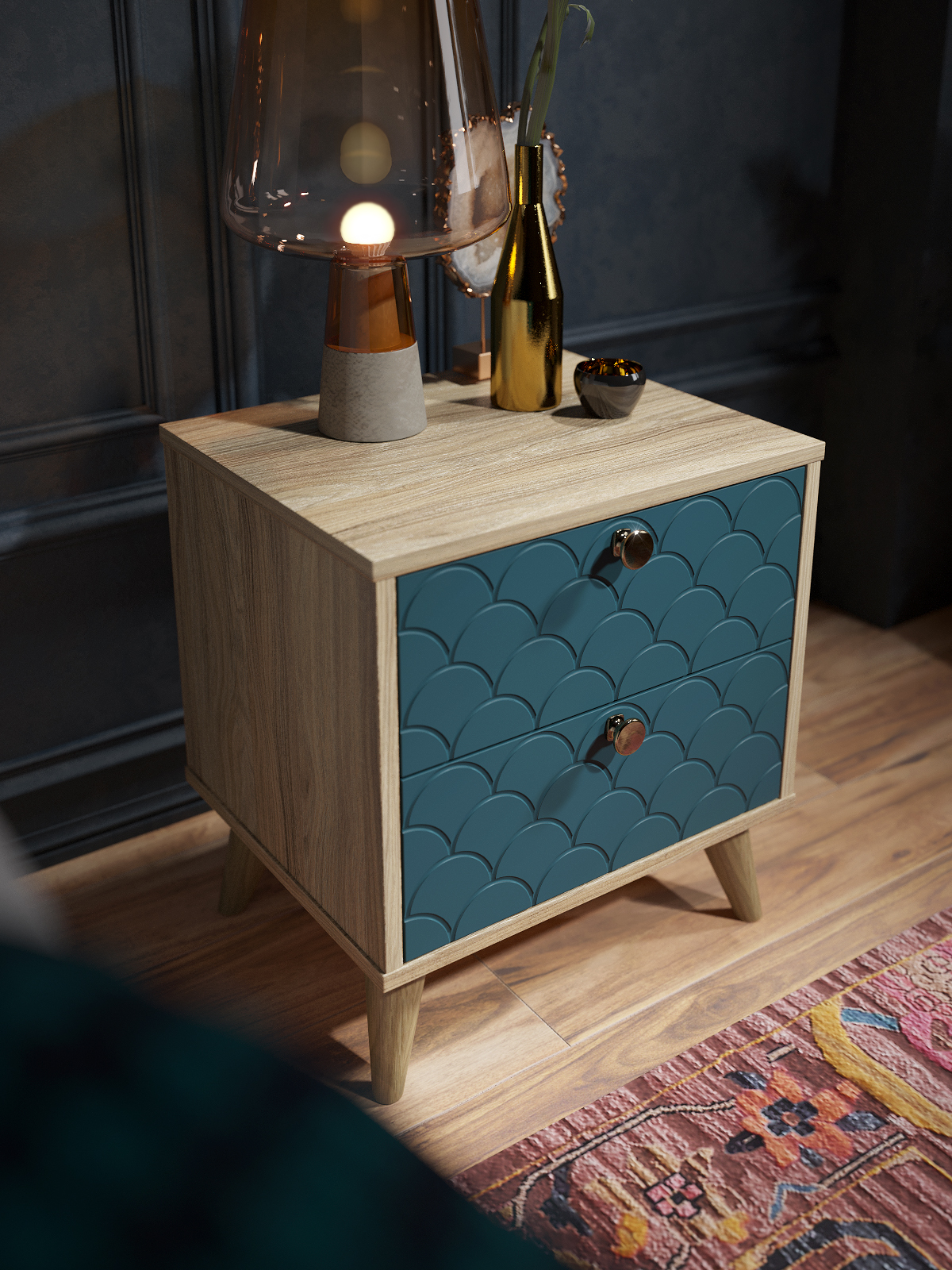 Тумба прикроватная Велламо ВО-1 будет прекрасным дополнением интерьера любой комнаты. Два вместительных выдвижных ящика пригодятся для хранения разнообразных аксессуаров, книг и необходимых предметов. На тумбе вы сможете разместить небольшой светильник и несколько фотографий. Задняя стенка изготовлена из ЛДСП 16 мм, дно ящика двп 3 мм. Фурнитура: телескопические направляющие полного выдвижения без доводчиков, ручки металл, опоры деревянные высотой 120 мм.