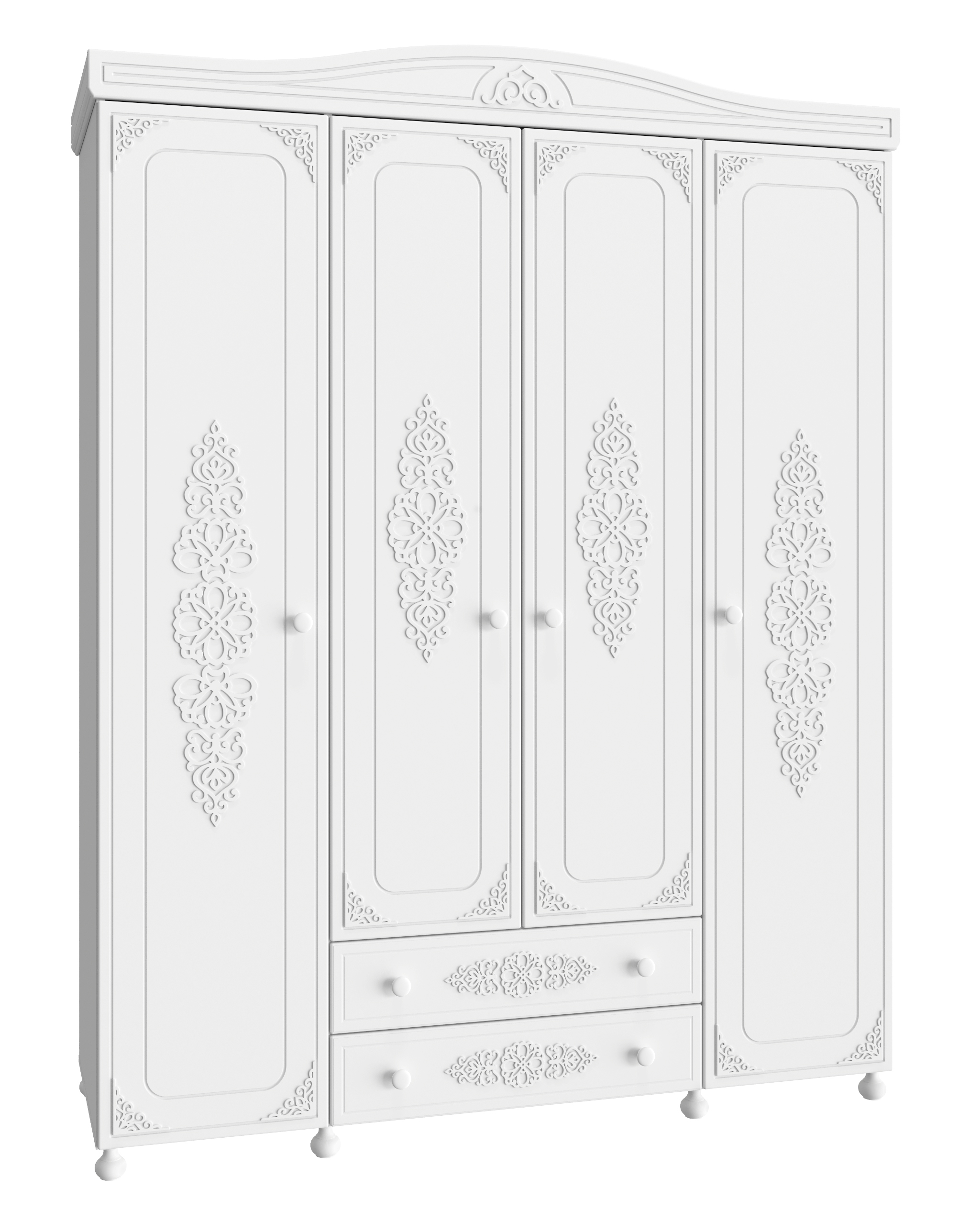 Шикарный, большой распашной шкаф Ассоль плюс АС-28 с четырьмя дверцами и двумя выдвижными ящиками. Особый шарм шкафу придают уникальные объемные фасады с 3D накладками. Шкаф АС-28 - это большая вместимость, функциональность и великолепный внешний вид! Фурнитура: петли с доводчиками, телескопические направляющие полного выдвижения. Высота опоры 65 мм.
