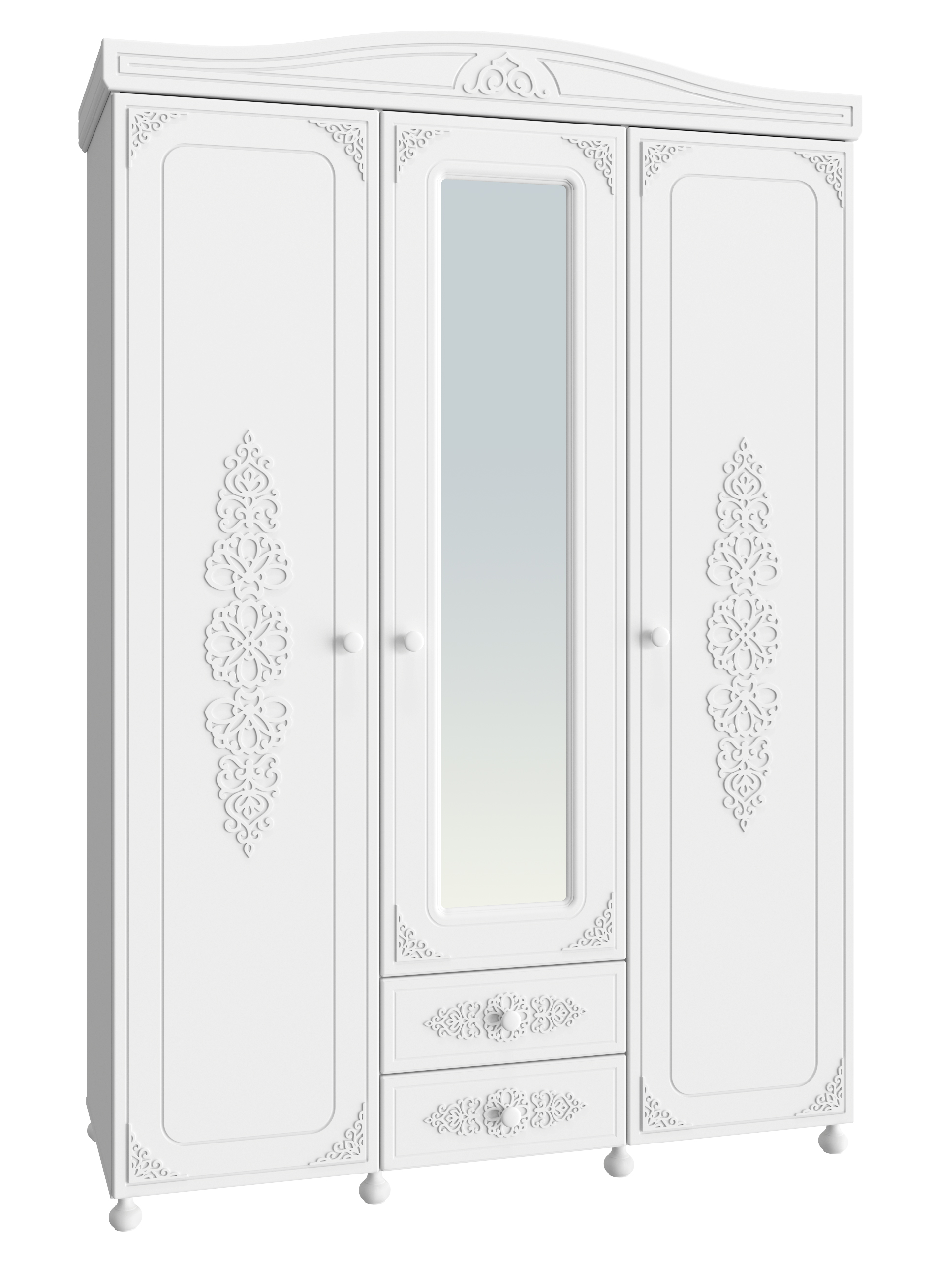 Шкаф Ассоль плюс АС-27 с тремя дверцами и двумя выдвижными ящиками. Особый шарм шкафу придают уникальные объемные фасады с 3D накладками. Шкаф АС-27 - это большая вместимость, функциональность и великолепный внешний вид! Высота опоры 65 мм. Фурнитура: петли с доводчиками, телескопические направляющие полного выдвижения.