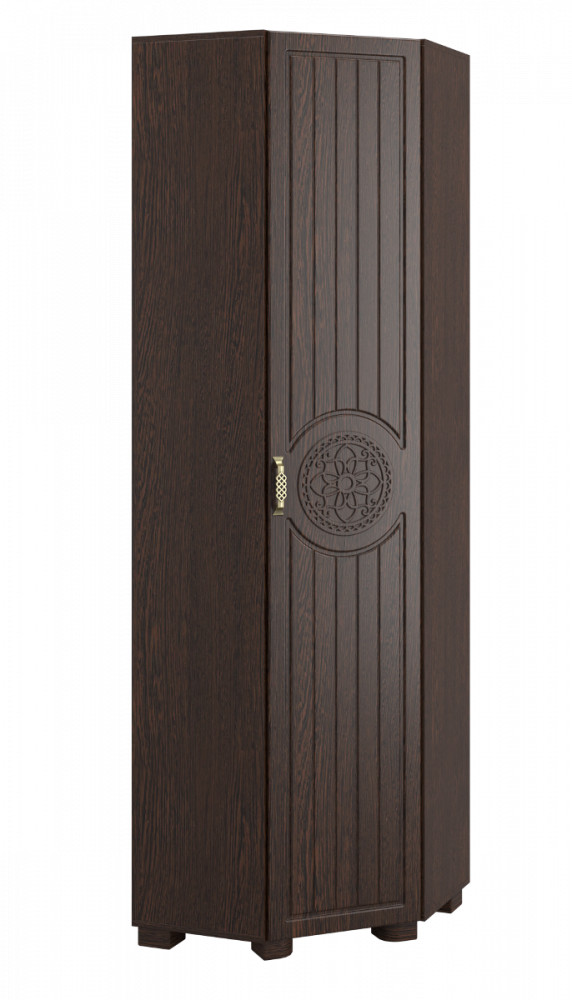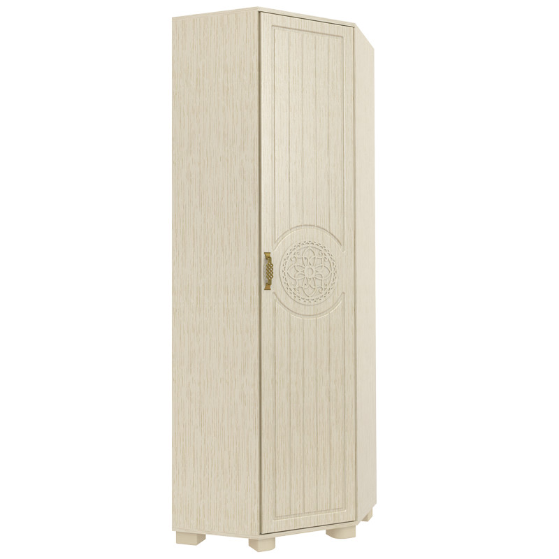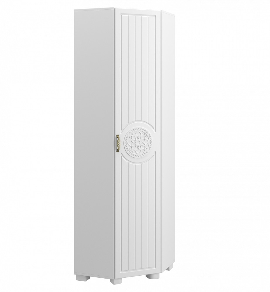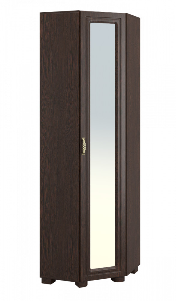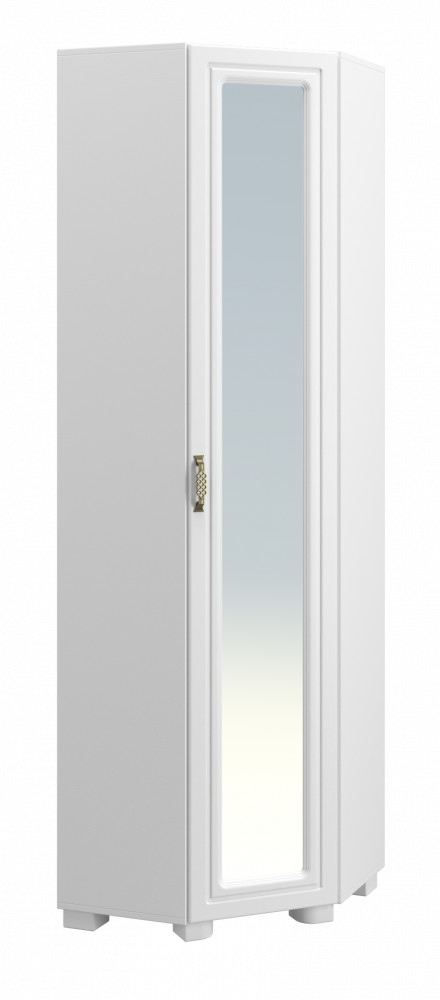Шкаф угловой Монблан МБ-20К станет замечательным дополнением для обустройства комфортной и функциональной комнаты. За распашной дверью находится штанга для вешалок-плечиков. Антресольная и нижняя полки предназначены для хранения сложенной одежды, белья, различных аксессуаров и коробок с обувью. Дверь шкафа может комплектоваться зеркалом. Модуль может быть собран в зеркальном варианте "левым" или "правым". Высота опоры 50 мм. Фурнитура: ручка бронза, опоры пластик.
