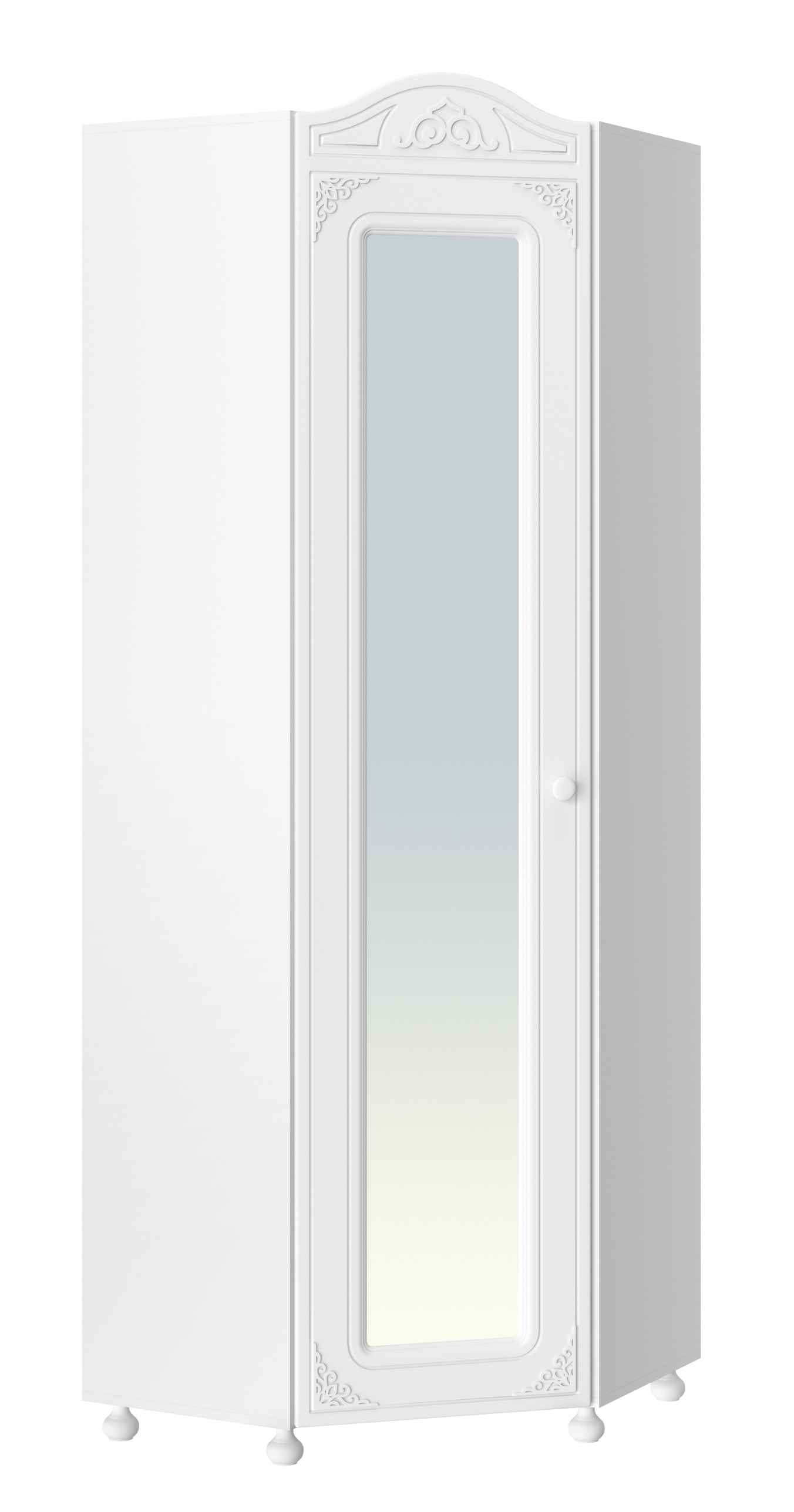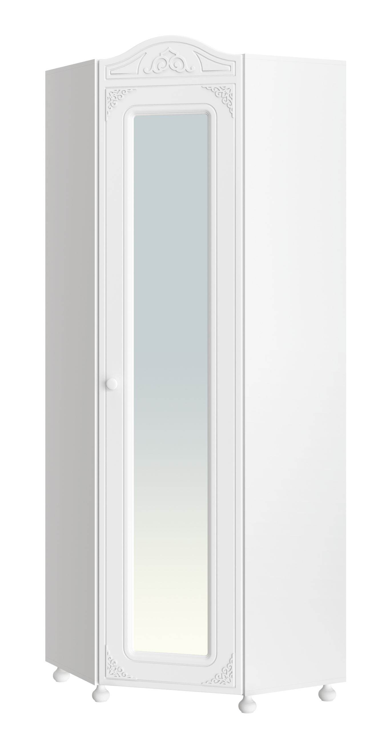 Шкаф угловой с зеркалом Ассоль АС-522К (левый с короной) белое дерево