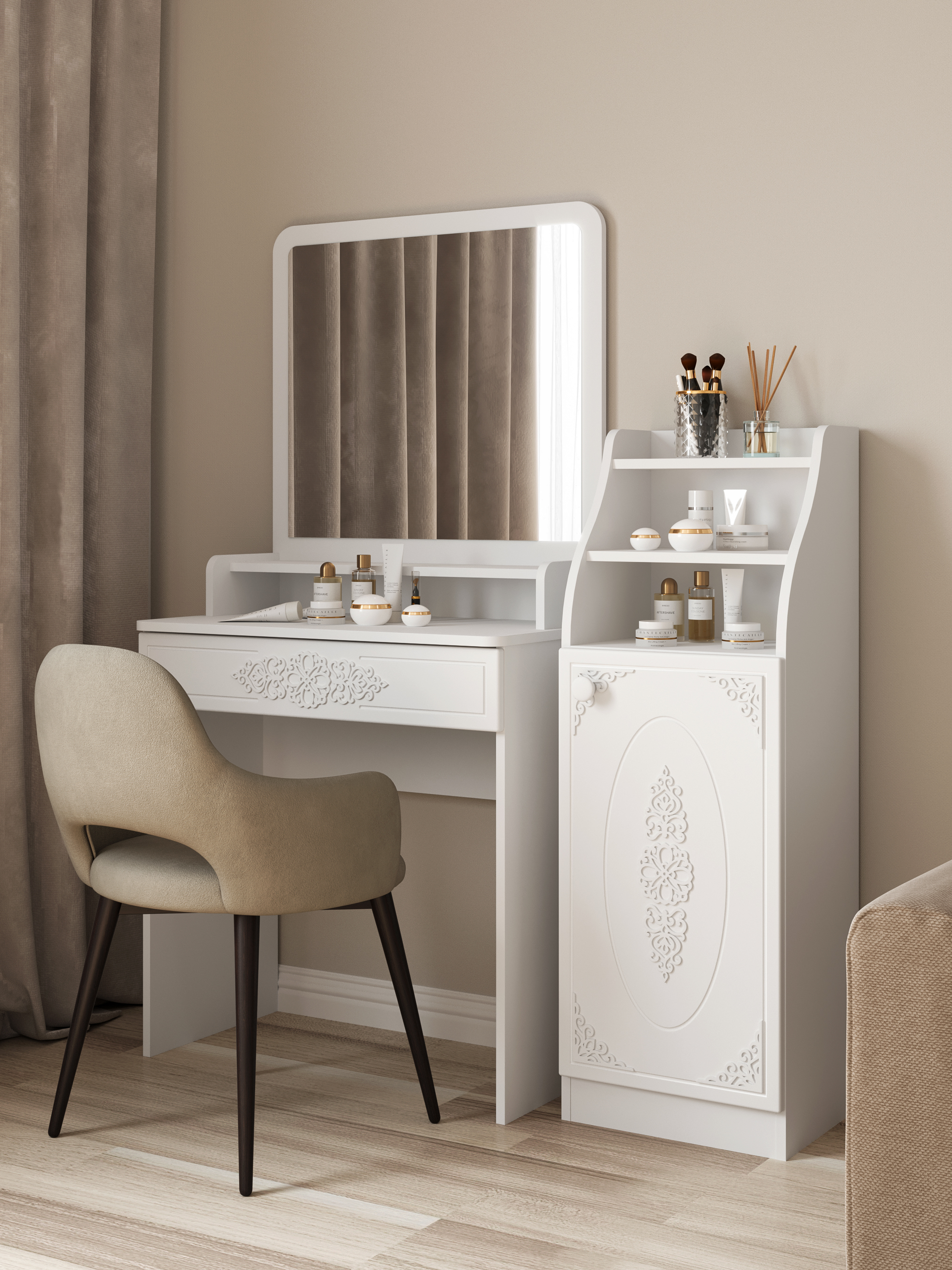 • Туалетный столик с зеркалом Ассоль Лайт ТСН-1 белое дерево / 1 шт