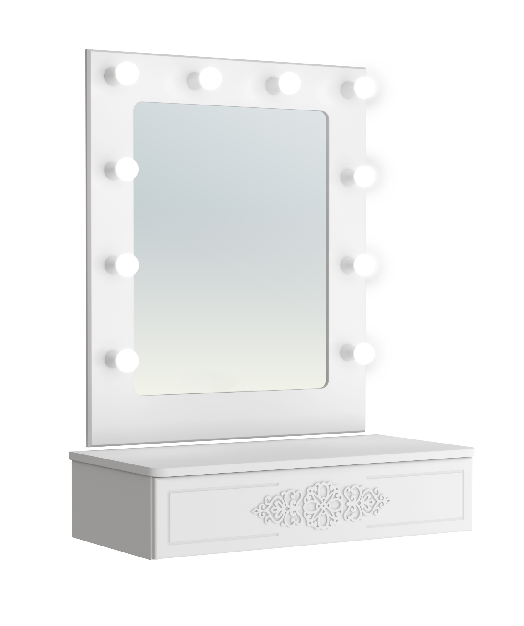 Тумба подвесная/консольный столик с зеркалом АС-69-ДС-40 с выдвижным ящиком идеально впишется в любой интерьер. Изящный дизайн, функциональность и компактность, а так же его крепление на стену позволяют создать интересное дизайнерское решение и интерьер не будет выглядеть громоздко. Отсутствие лишних деталей делает консоль легкой и практичной не загромождает пространство визуально. Несмотря на компактный размер столешница позволяет разместить ноутбук, зеркало, косметичку, настольную лампу или все для учебы и творчества. Установить можно практически в любом помещении: в детской комнате, в гостиной, в прихожей, на балкон или лоджию как полка для зеркала, для ключей, для создания индивидуального интерьерного решения. Фурнитура: телескопические направляющие полного выдвижения без доводчиков. Габаритный размер зеркального полотна 617х492 мм, ширина рамы 100 мм. Шнур с выключателем и вилкой длиной 2 метра. Мощность лампочек рекомендуется до 5 Вт с цоколем Е14. Лампочки в комплект не входят, приобретаются отдельно. Рекомендуется монтаж к стене.
