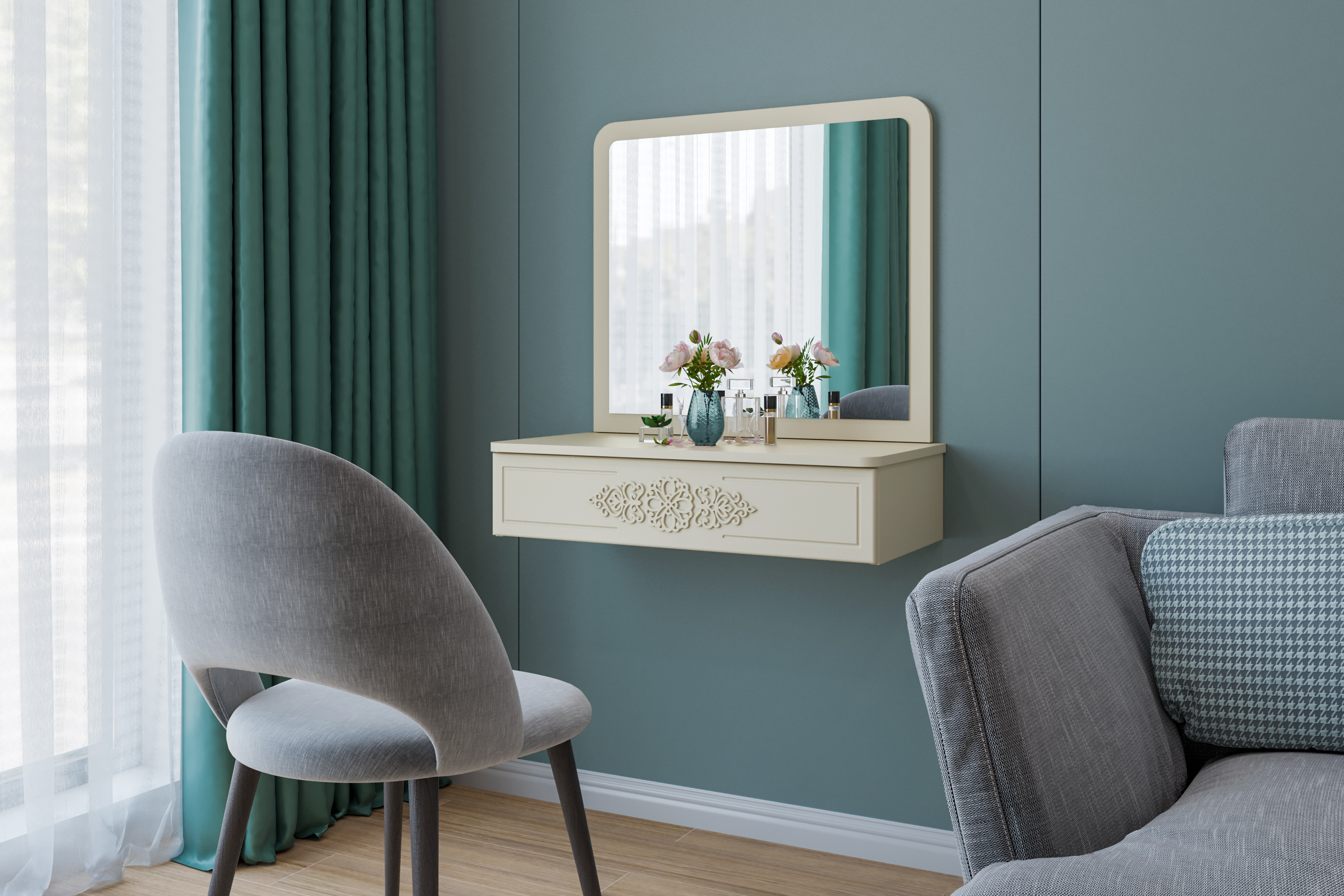 Тумба подвесная/консольный столик с зеркалом АС-69-ТН-30 с выдвижным ящиком идеально впишется в любой интерьер. Изящный дизайн, функциональность и компактность, а так же его крепление на стену позволяют создать интересное дизайнерское решение и интерьер не будет выглядеть громоздко. Отсутствие лишних деталей делает консоль легкой и практичной не загромождает пространство визуально. Несмотря на компактный размер столешница позволяет разместить ноутбук, зеркало, косметичку, настольную лампу или все для учебы и творчества. Установить можно практически в любом помещении: в детской комнате, в гостиной, в прихожей, на балкон или лоджию как полка для зеркала, для ключей, для создания индивидуального интерьерного решения. Фурнитура: телескопические направляющие полного выдвижения без доводчиков. Важная информация. Мебель доставляется в разобранном виде, в упаковках.